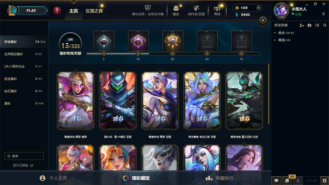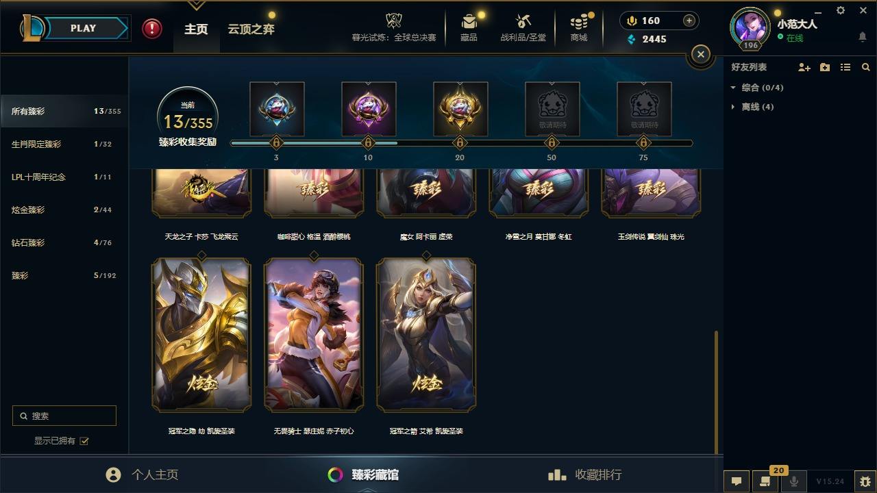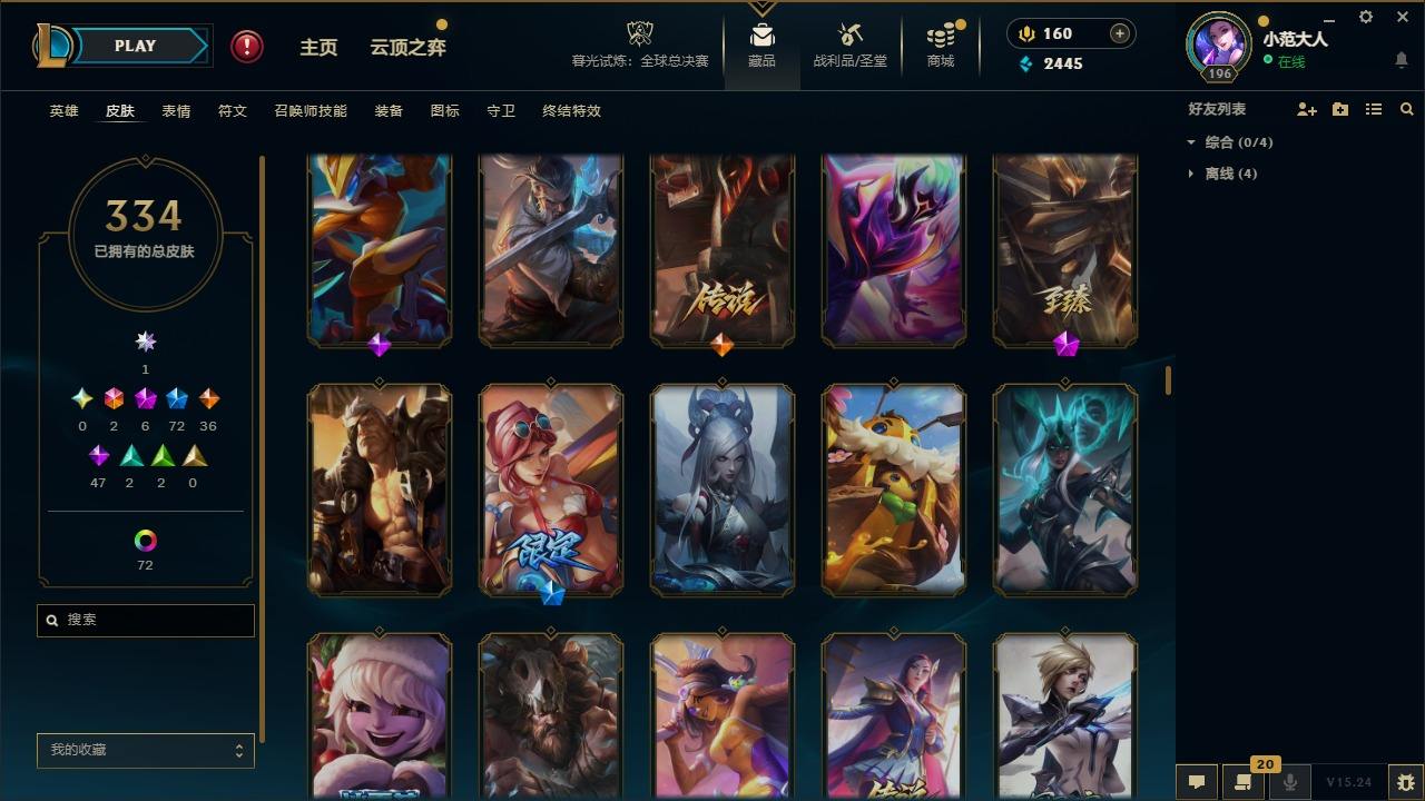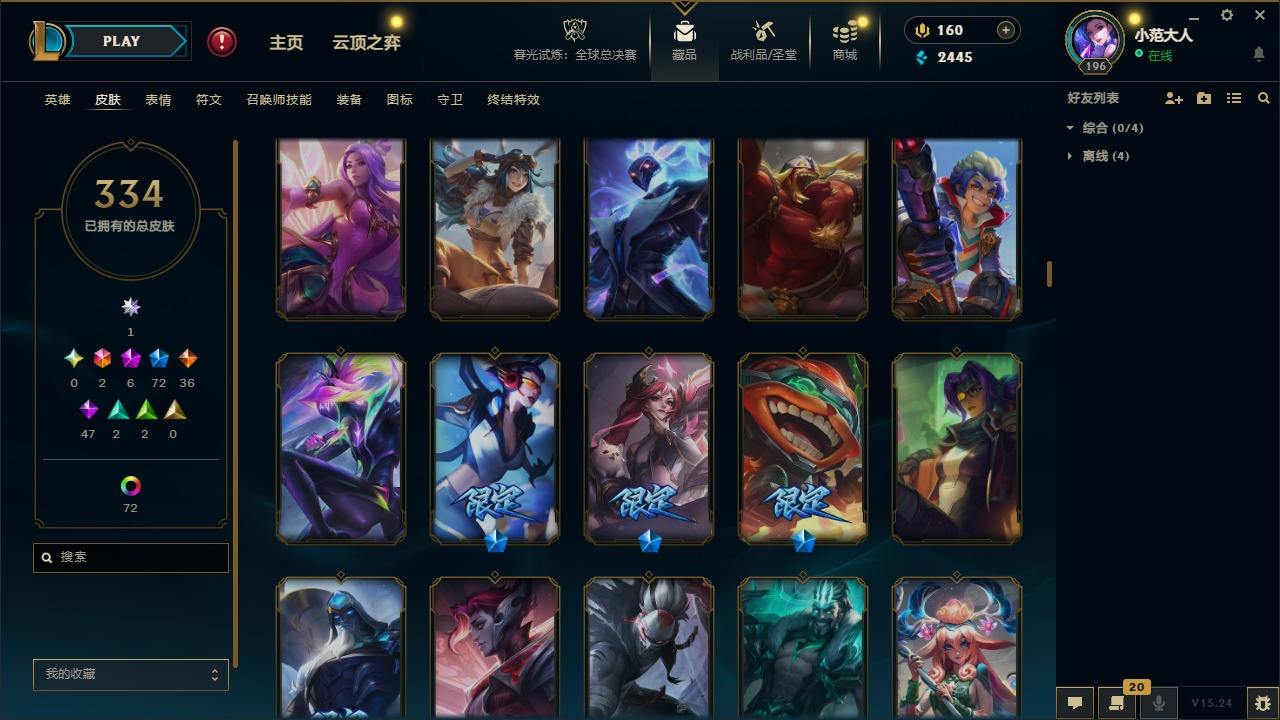【392205】[16183801]3卓越 2终极 6神话 72限定 36传说 47史诗 334皮肤 148炫彩 172英雄 可二次 可修改实名 【卓越】殿堂传奇 卡莎,联盟不朽 卡莎,签名版联盟不朽 卡莎【至臻】至臻 K/DA 卡莎,至臻 黑夜使者 李青,至臻 王国机神玄武 盖伦,水晶圣骑 艾希【限定】2021 全球总决赛 嘉文四世,创星之灵 璐璐,2022 全球总决赛 阿兹尔【情人节限定】觅
