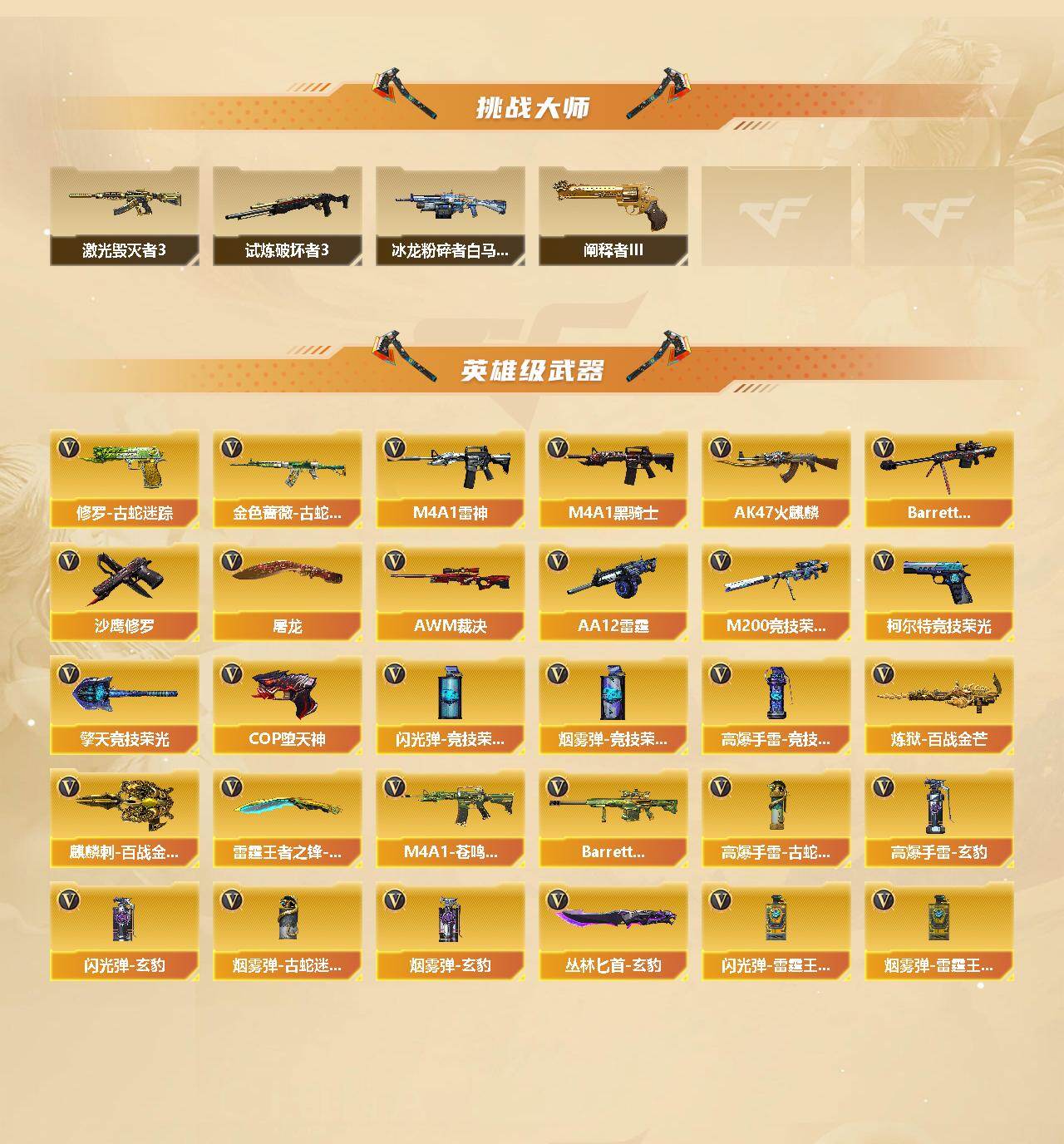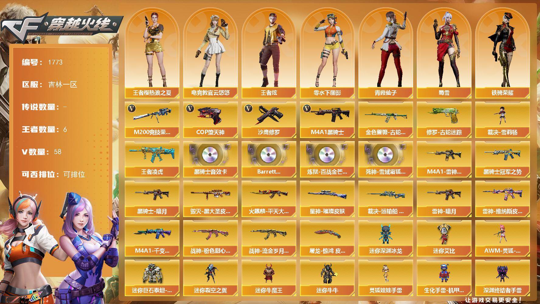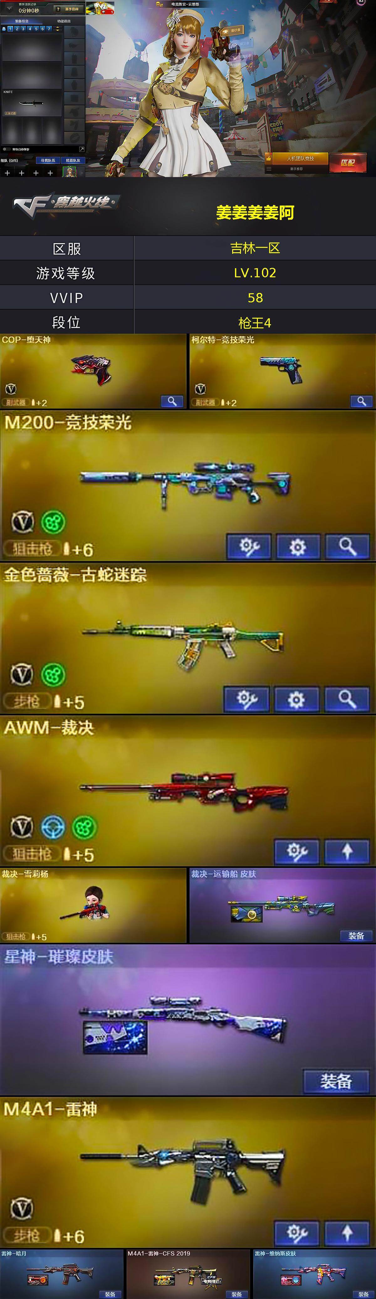 【395169】【395169】[16202928]吉林一区-58V-6王者-0炫金【热门武器】:金色蔷薇-古蛇迷踪,修罗-古蛇迷踪,M200-竞技荣光,M4