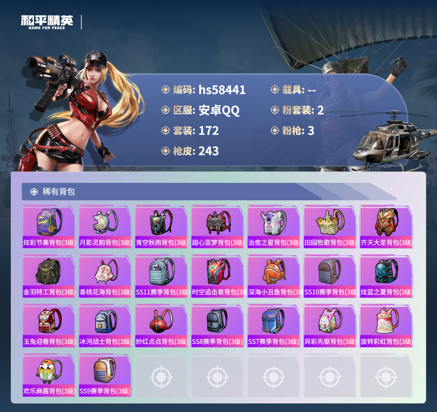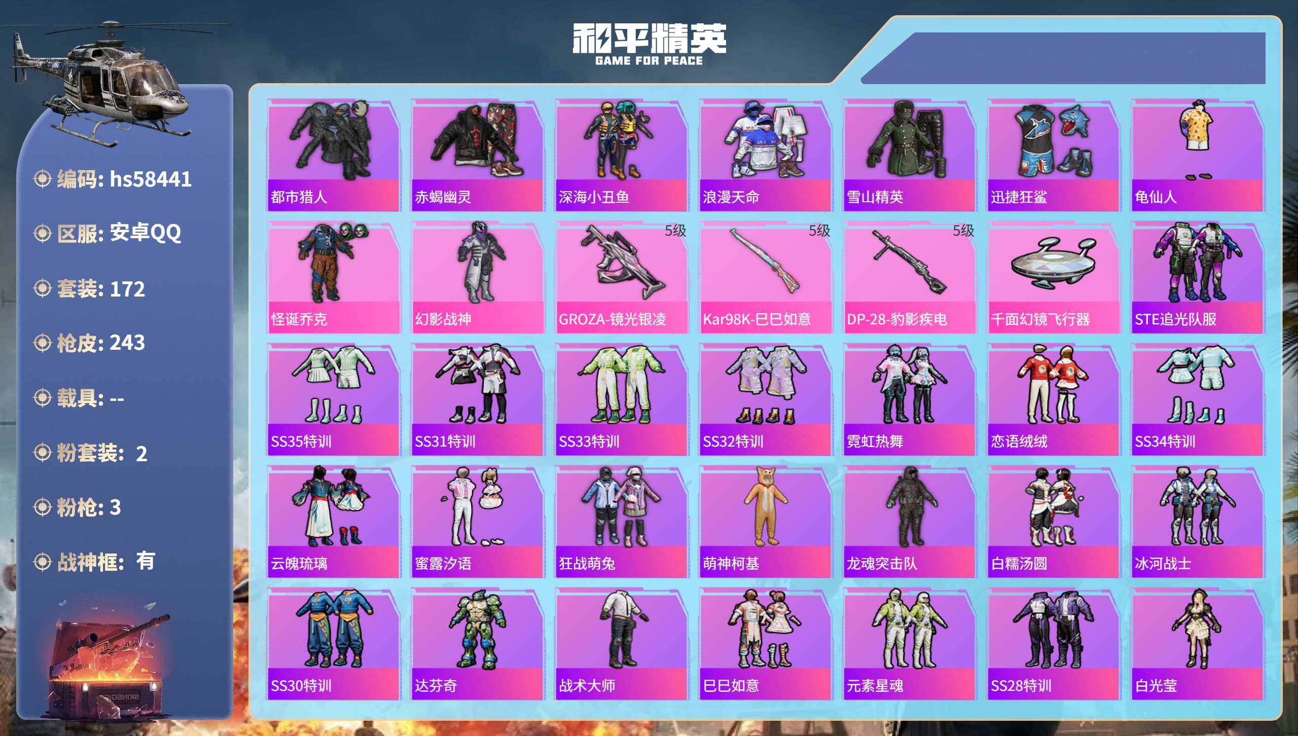 游戏区服:和平精英 / 安卓系统 / QQ账号