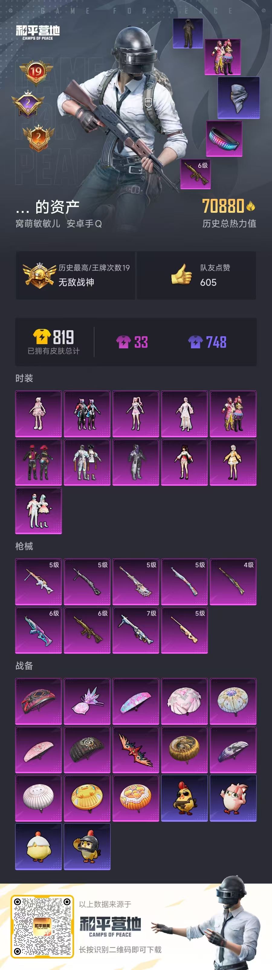 游戏区服:和平精英 / 安卓系统 / QQ账号