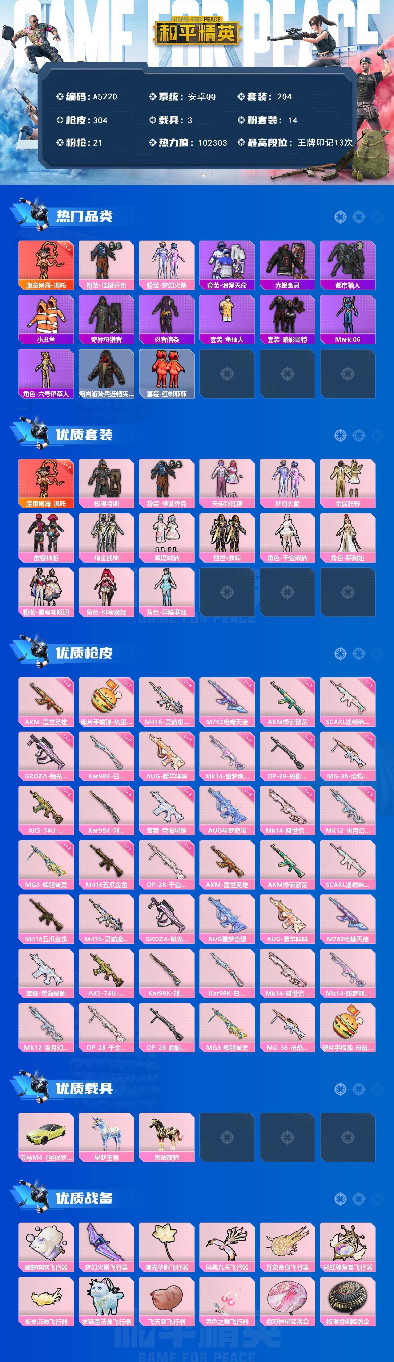 游戏区服:和平精英 / 安卓系统 / QQ账号