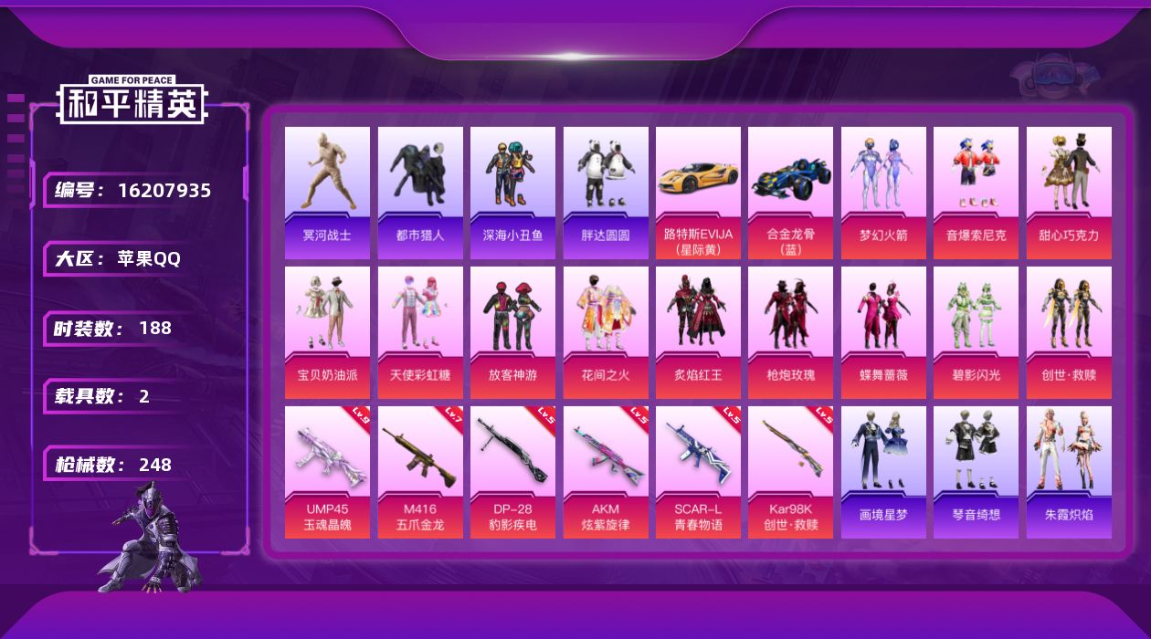 【395590】【可二次】【苹果QQ】合金龙骨蓝色 木乃伊 M416-五爪金龙 路特斯EV黄色 甜心巧克力 AKM-炫紫旋律 放客神游 蝶舞蔷薇 梦幻火箭 天使彩虹糖 深海小丑鱼 碧影闪光 宝贝奶油派 枪炮玫瑰 SCAR-L-青春物语