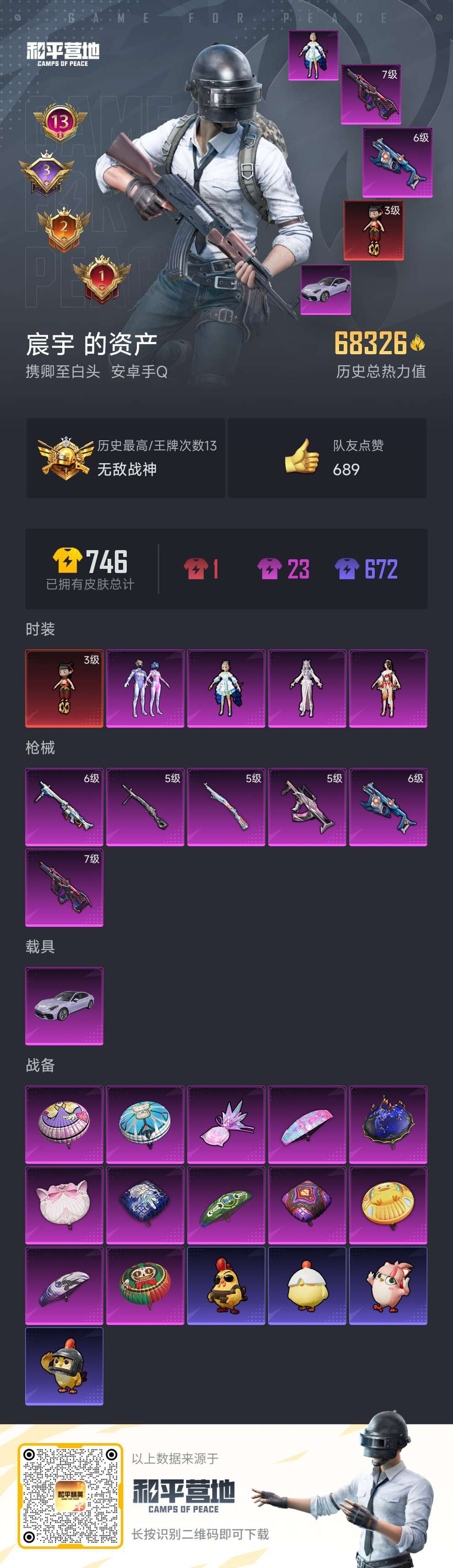 游戏区服:和平精英 / 安卓系统 / QQ账号