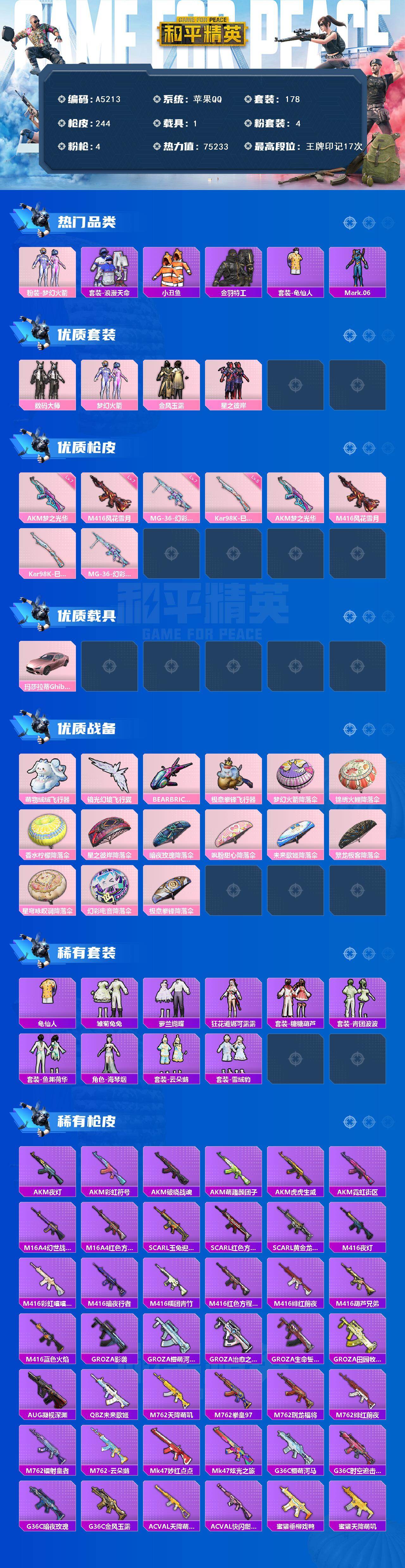 【395638】【可二次】【苹果QQ】龟仙人 梦幻火箭降落伞 漫步者 迅捷狂鲨 M762-瑞龙福将 星之彼岸降落伞 香水柠檬降落伞 浪漫樱花 鹤发童颜 金羽特工 锦绣火鲤降落伞 金风玉露 M416-风花雪月 梦幻火箭 星之彼岸 AKM-梦之光华 数码大师 M24-香水柠檬 瑞龙福将 浪漫天命 雪山精英 团圆交子