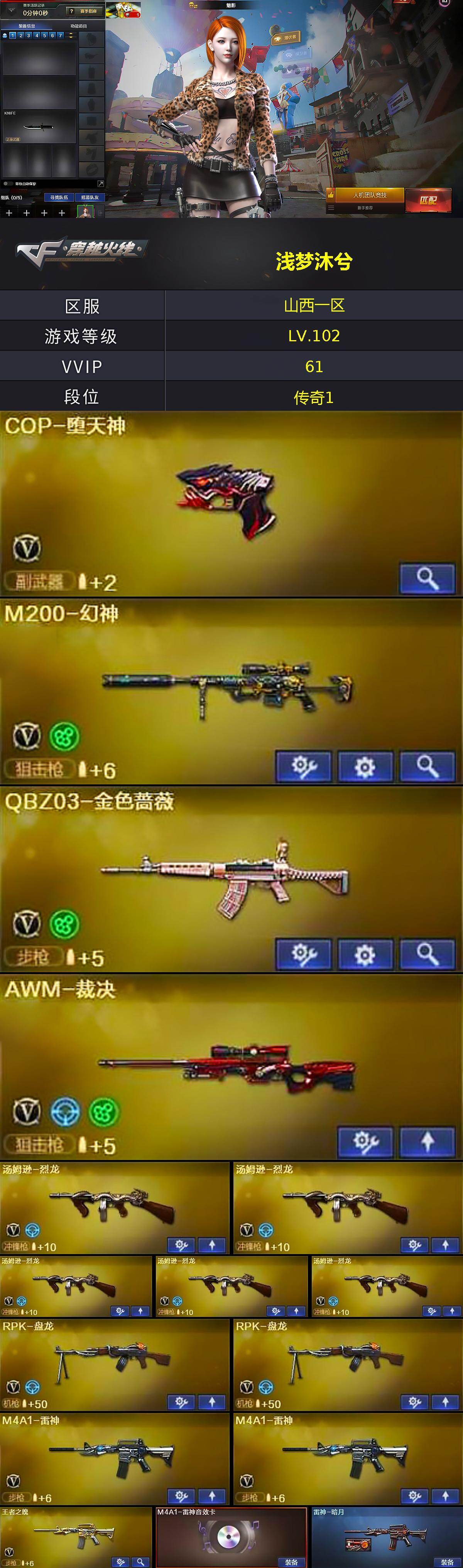 【395652】【395652】[16208730]山西一区-55V-4王者-1炫金【热门武器】:QBZ03-金色蔷薇,HK417-朱雀,M200-幻神,死亡