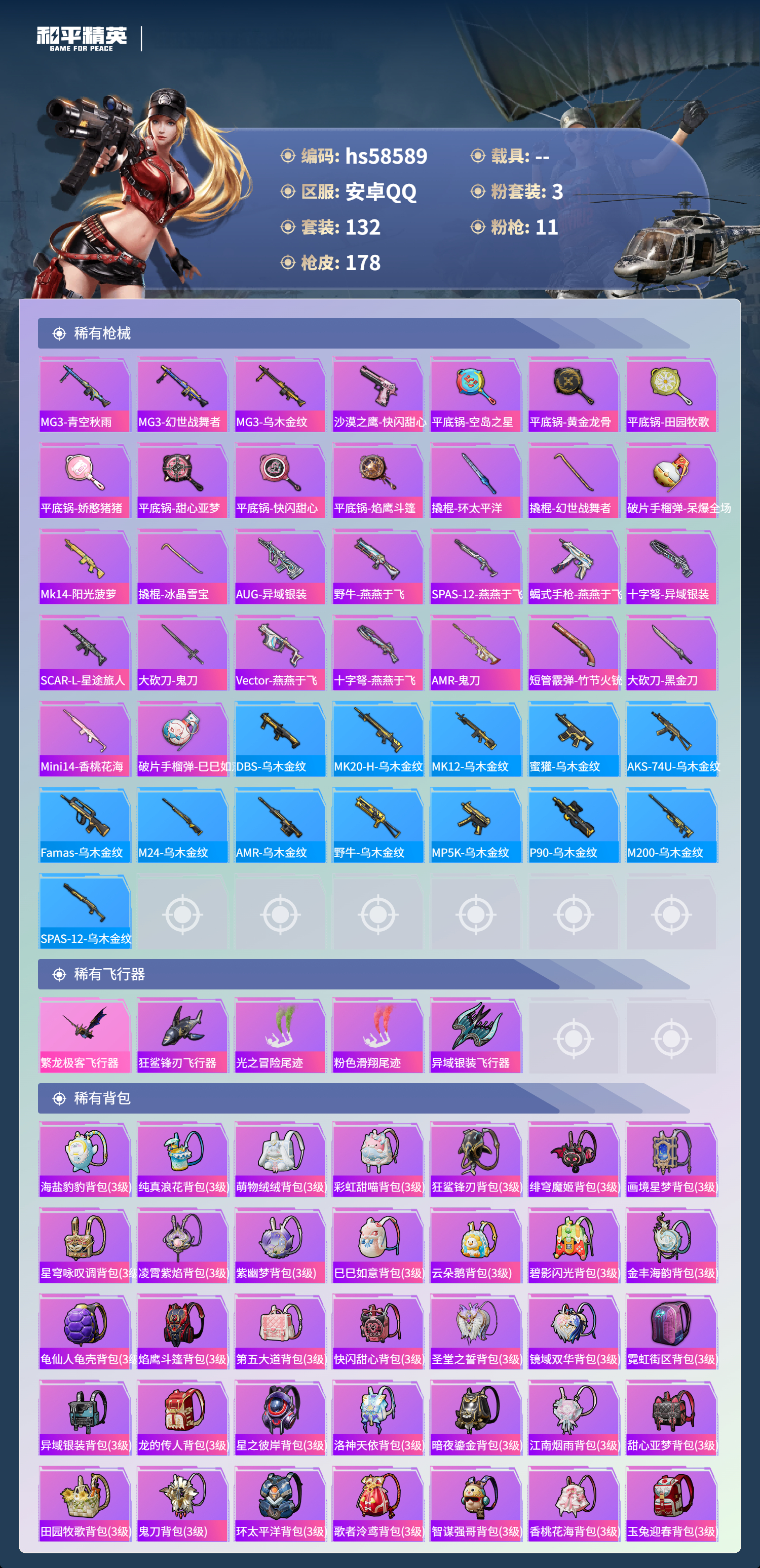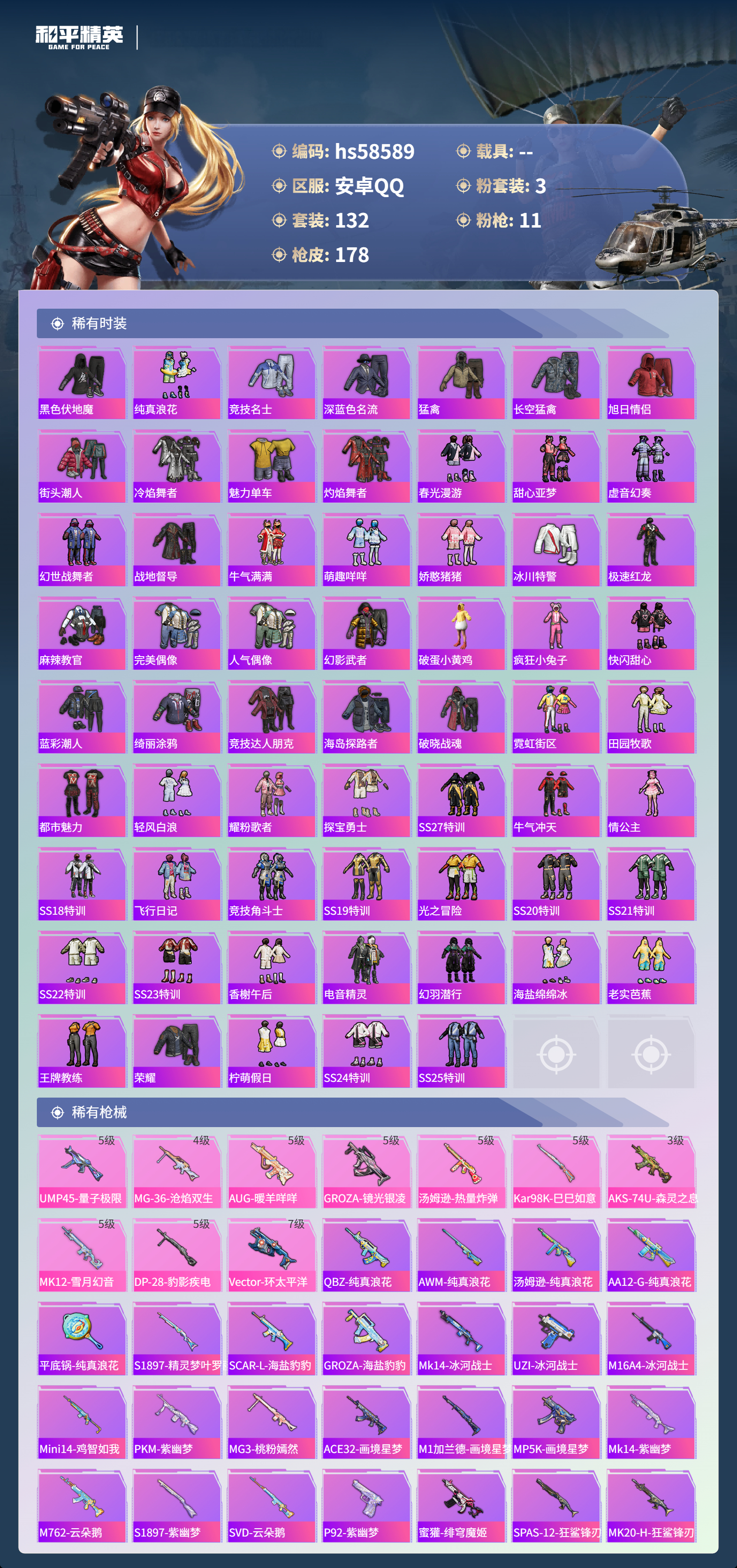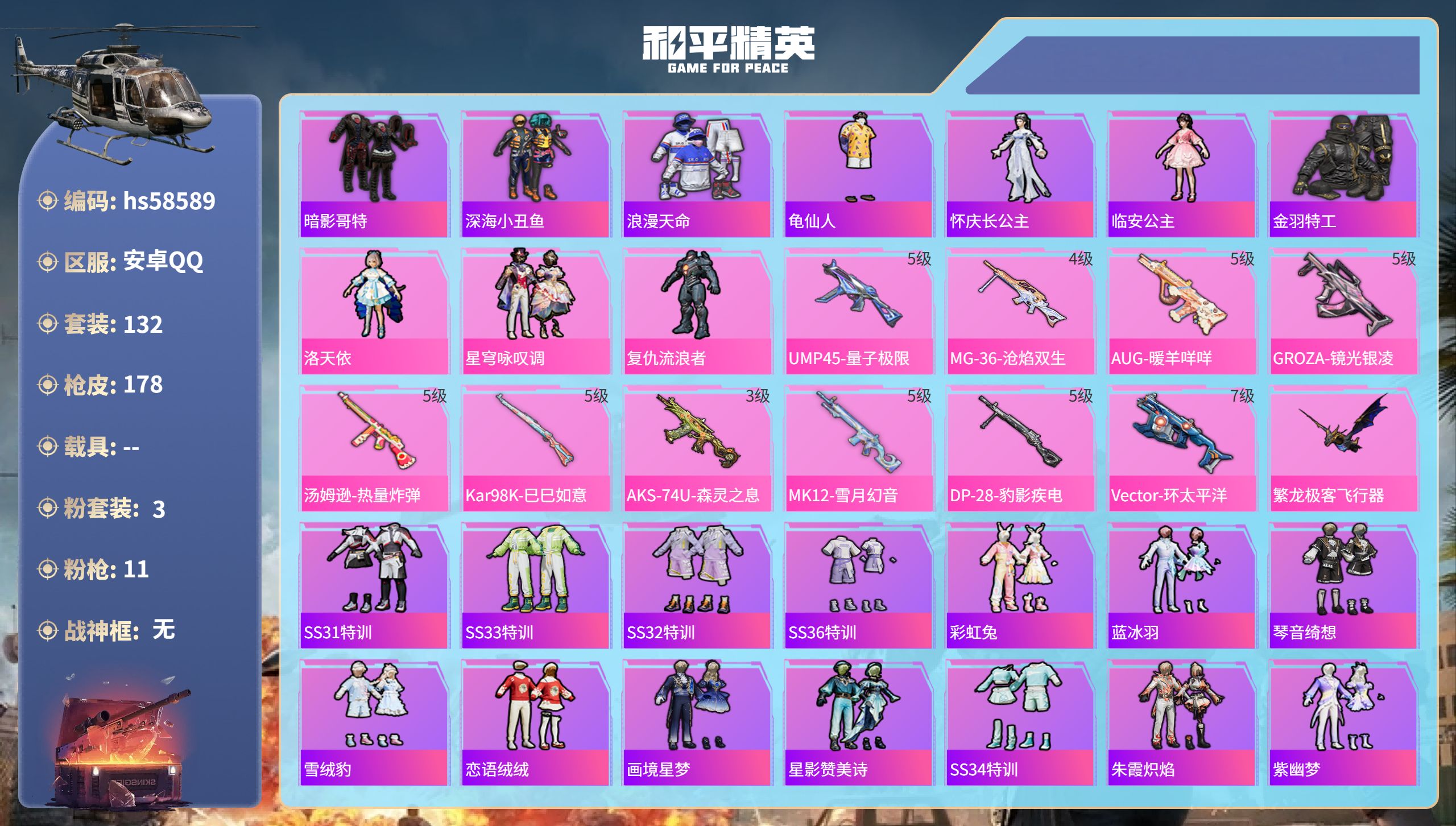 游戏区服:和平精英 / 安卓系统 / QQ账号