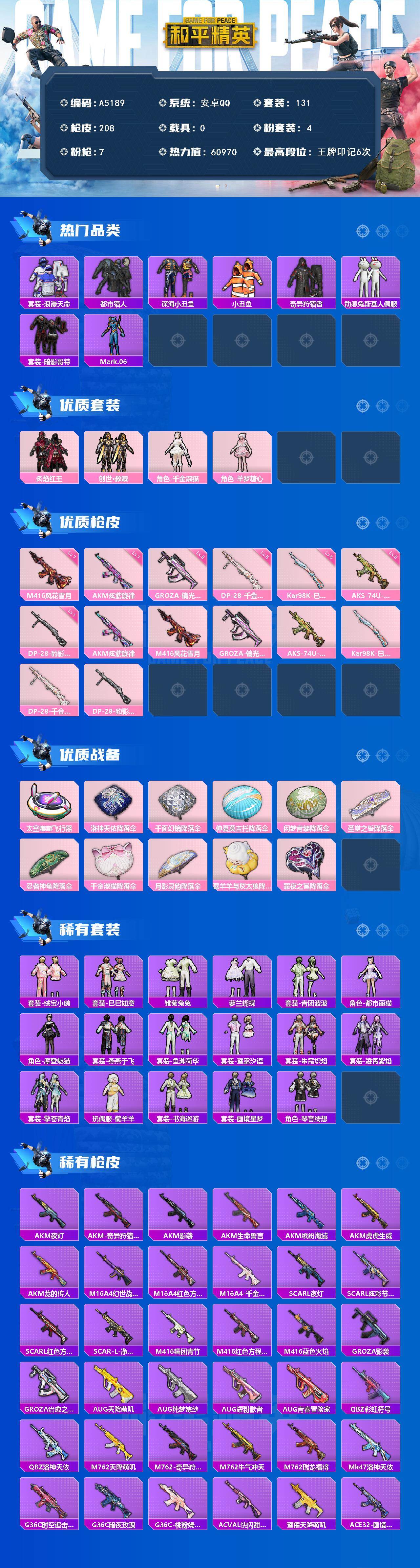 游戏区服:和平精英 / 安卓系统 / QQ账号