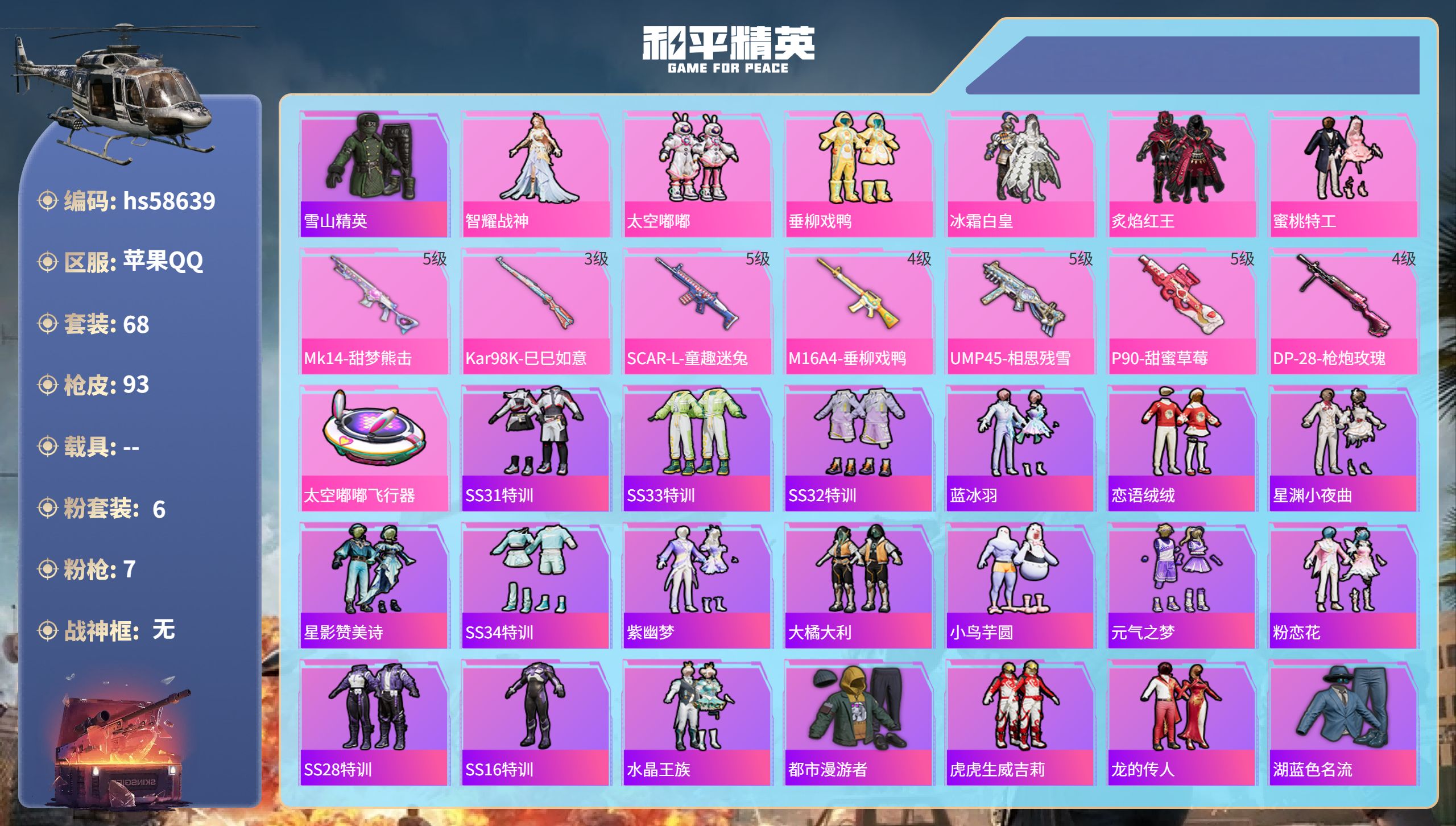 游戏区服:和平精英 / 苹果系统 / QQ帐号