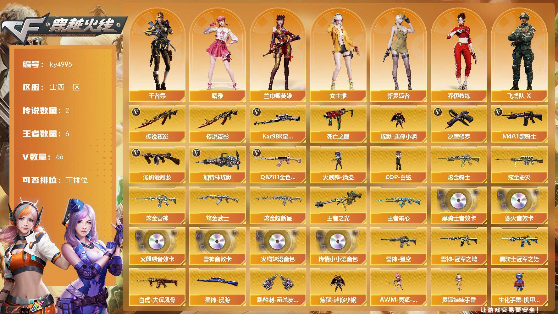 【395905】【395905】[16211316]山西一区-66V-6王者-5炫金【传说武器】:传说夜影【传说角色】:传说艾莉莎【热门武器】:传说夜影,QB