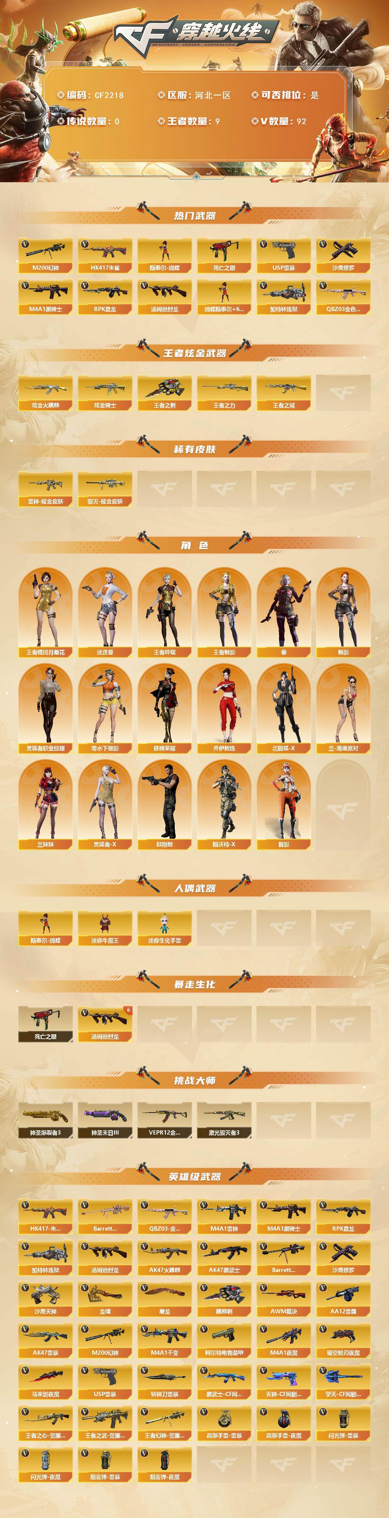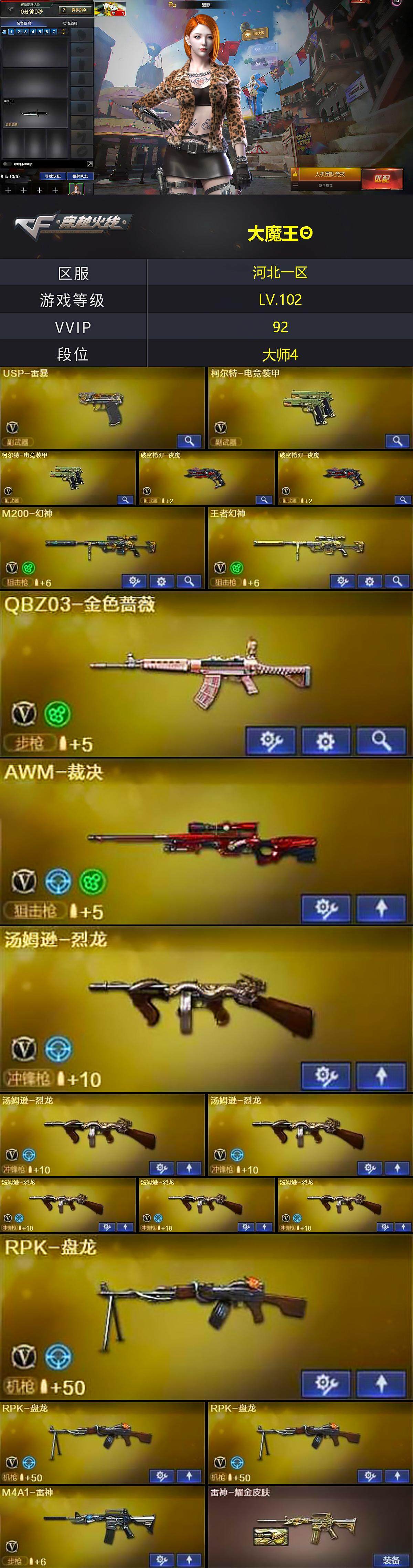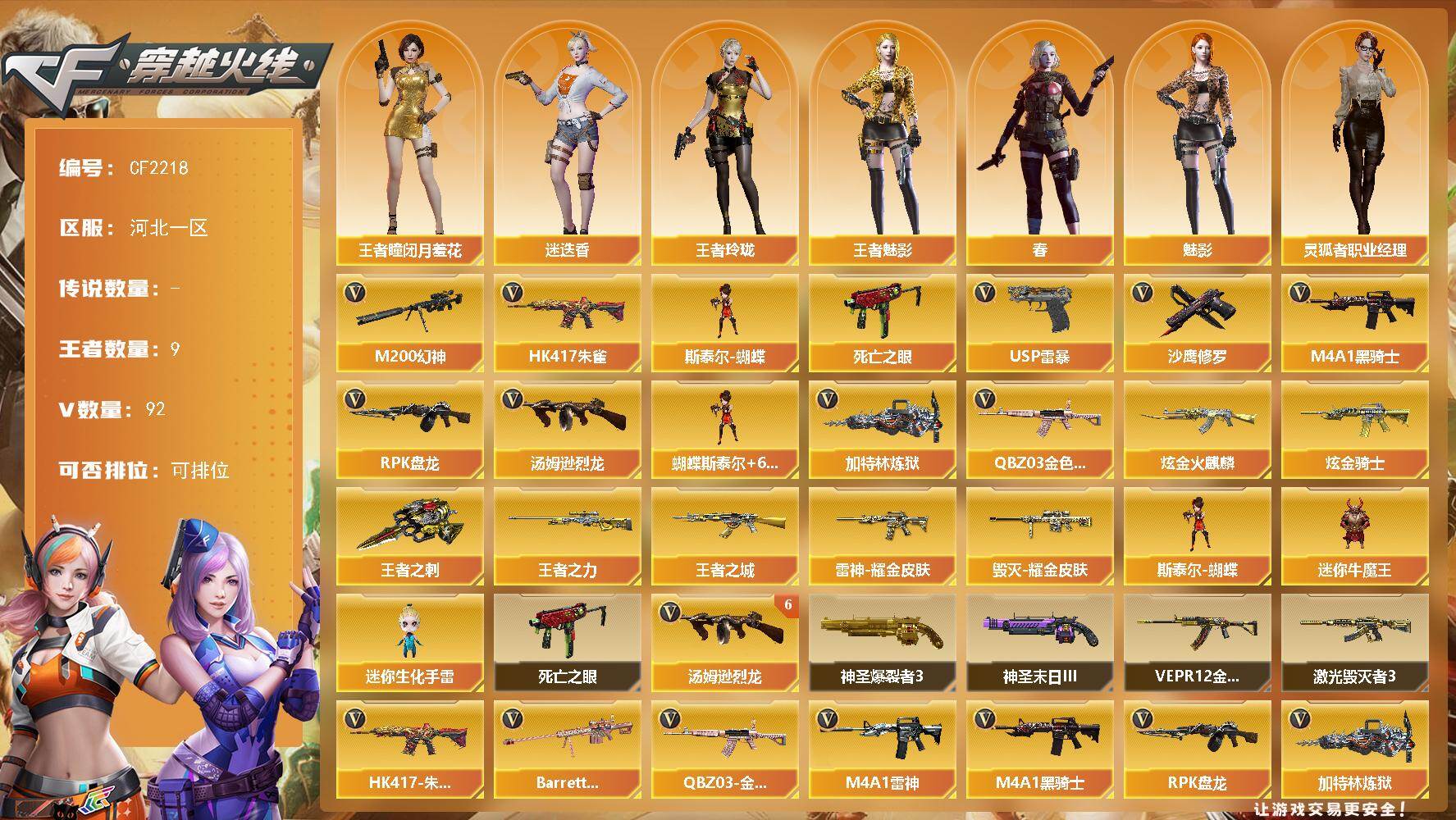 【395959】【395959】【CF2218】【双全号 QBZ03-金色蔷薇,HK417-朱雀,M200-幻神,死亡之眼,M4A1-黑骑士*3,汤姆逊-烈龙