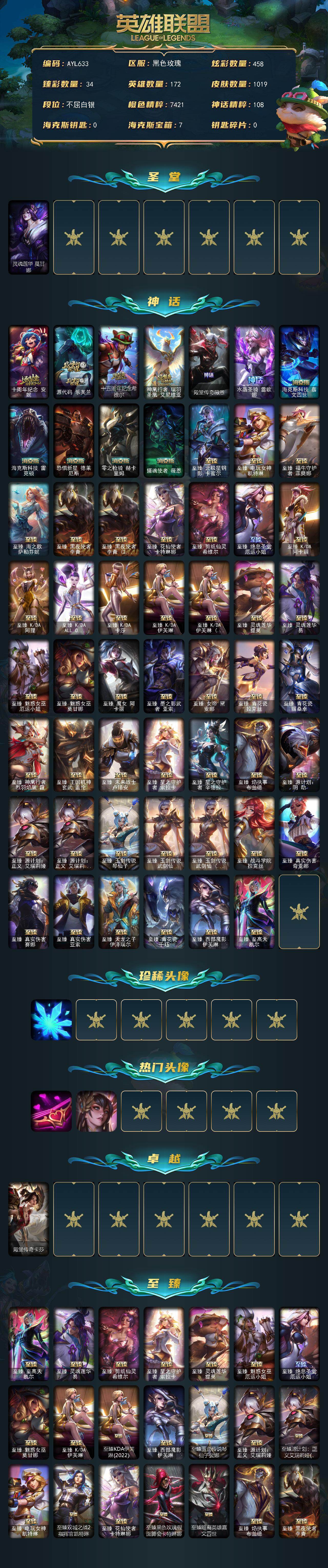 【405074】[16276663]【特价出售/店主推荐】白银段位-172英雄-1019皮肤-458炫彩-5终极-63神话-150限定-85传说-173史诗【圣堂皮肤】:灵魂莲华莫甘娜【神话皮肤】:十周年纪念安妮,源代码乐芙兰,十五周年纪念希维尔,神凰行者瑞羽圣凰艾尼维亚,殿堂传奇薇恩,水晶圣骑蕾欧娜,海克斯科技嘉文四世,海克斯科技雷克顿,恐惧新星德莱厄斯,零之枪骑赫卡里姆,摄魂使者薇恩,至臻真