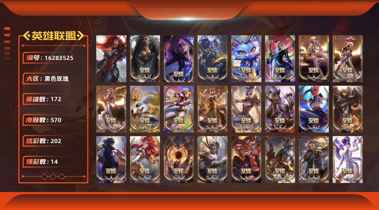 【405753】[16283525]【店主推荐捡漏号!可直接换绑】未定级段位-172英雄-570皮肤-202炫彩-1终极-64神话-68限定-53传说-116史诗【至臻皮肤】:至臻魔女乐芙兰,至臻至高天凯尔,至臻灵魂莲华易,至臻剪纸仙灵希维尔,至臻星之守护者索拉卡,至臻北极星使者沃里克,至臻魅惑女巫厄运小姐,至臻绝息圣堂厄运小姐,至臻魅惑女巫莫甘娜,至臻KDA伊芙琳,至臻西部魔影伊芙琳,至臻斗魂