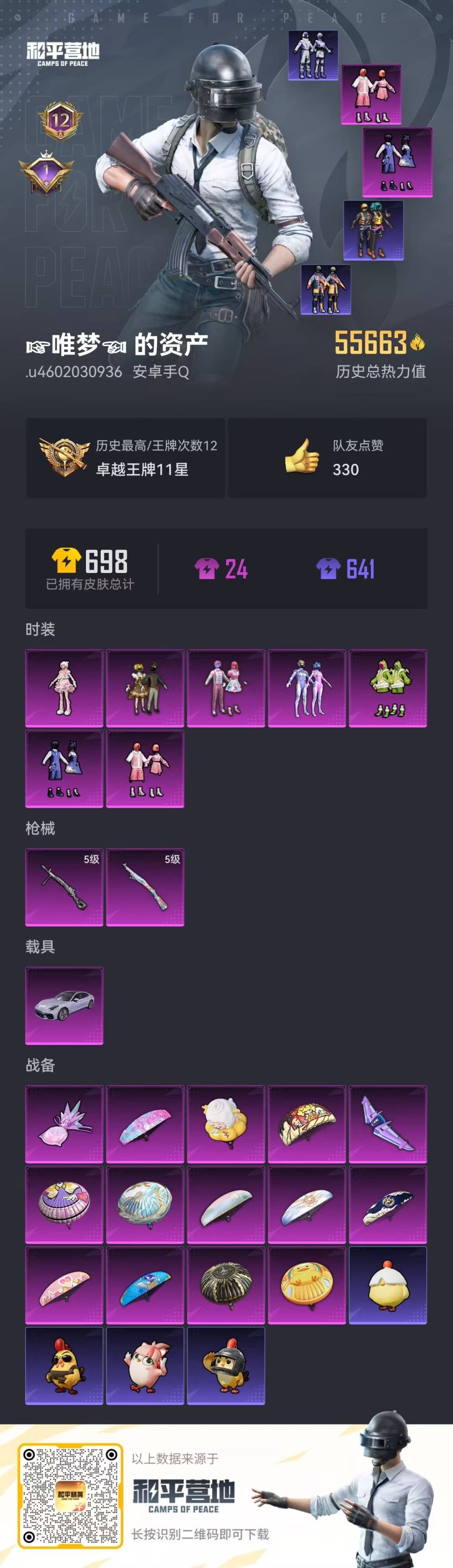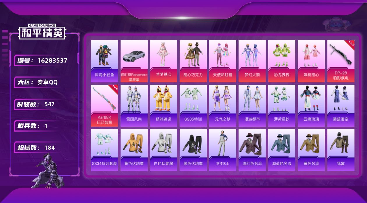 游戏区服:和平精英 / 安卓系统 / QQ账号