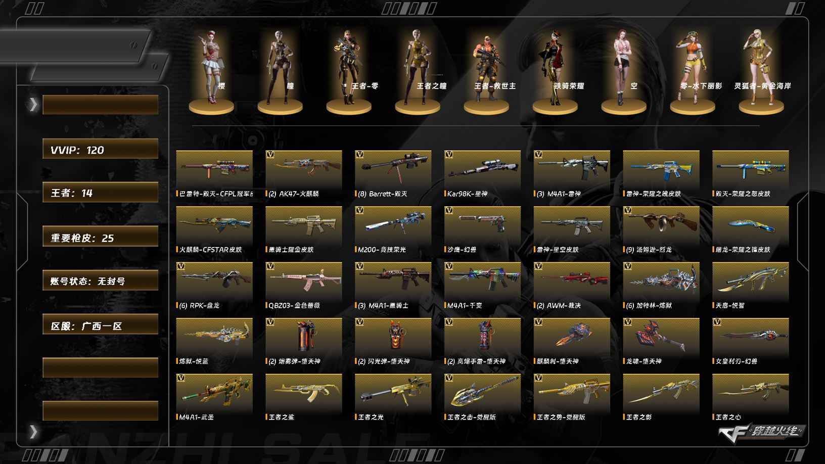 游戏区服:穿越火线 / 南部战区 / 广西一区互 通