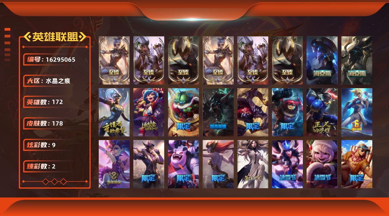 【407119】[16295065]【特价出售/店主推荐】青铜段位-172英雄-178皮肤-9炫彩-0终极-11神话-21限定-27传说-44史诗【热门头像】:春晖神女头像【至臻皮肤】:至臻魅惑女巫厄运小姐,至臻魅惑女巫厄运小姐(2022),至臻黑夜使者李青,至臻黑夜使者李青(2022),至臻玉剑传说武剑仙锐雯,至臻玉剑传说武剑仙(2022)【臻彩皮肤】:魔女阿卡丽虚荣,幽梦玫瑰泰隆浪漫花蕾【年
