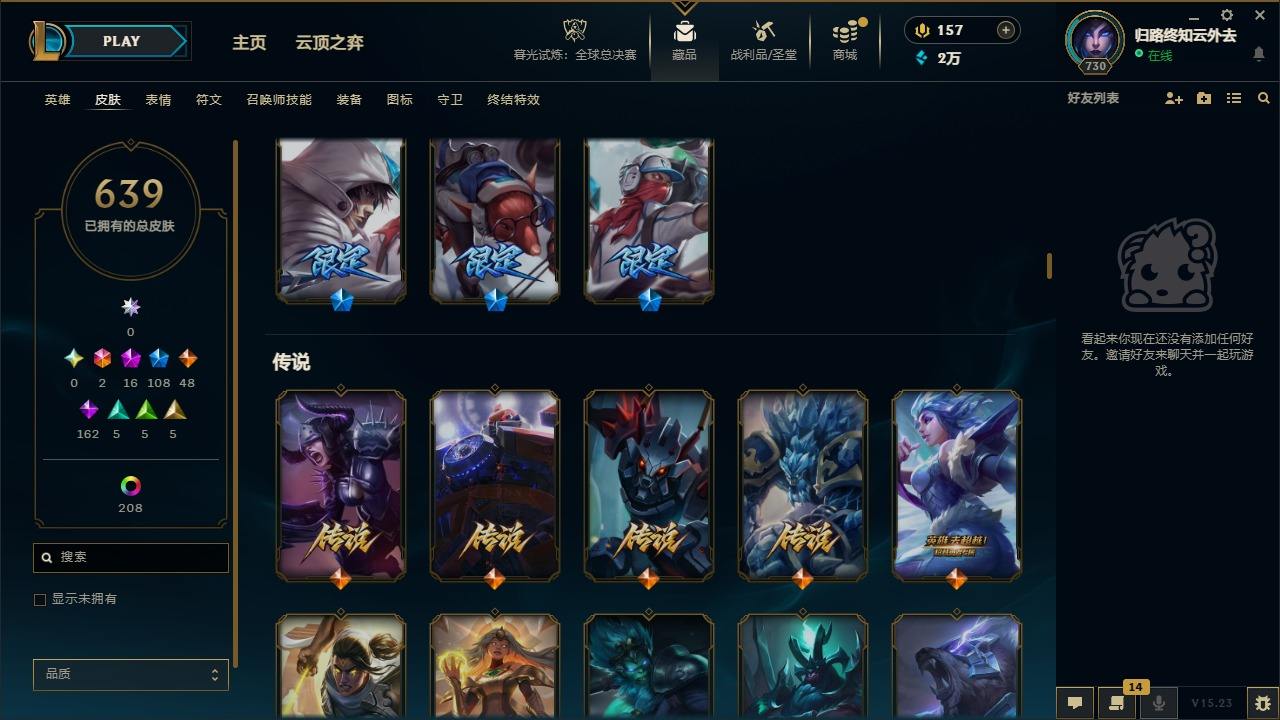 【414020】[16341506]2终极 16神话 108限定 48传说 162史诗 639皮肤 223炫彩 171英雄 可二次 可修改实名 【至臻】至臻 天龙之子 伊泽瑞尔,至臻 腥红之月 亚托克斯,至臻 源计划:正义 艾瑞莉娅,至臻 玉剑传说 武剑仙,至臻 魅惑女巫 厄运小姐,至臻 黑夜使者 李青,至臻 战斗学院 拉克丝,至臻 烈焰美人 薇恩【海克斯】海克斯 雷克顿,海克斯 波比,海克斯