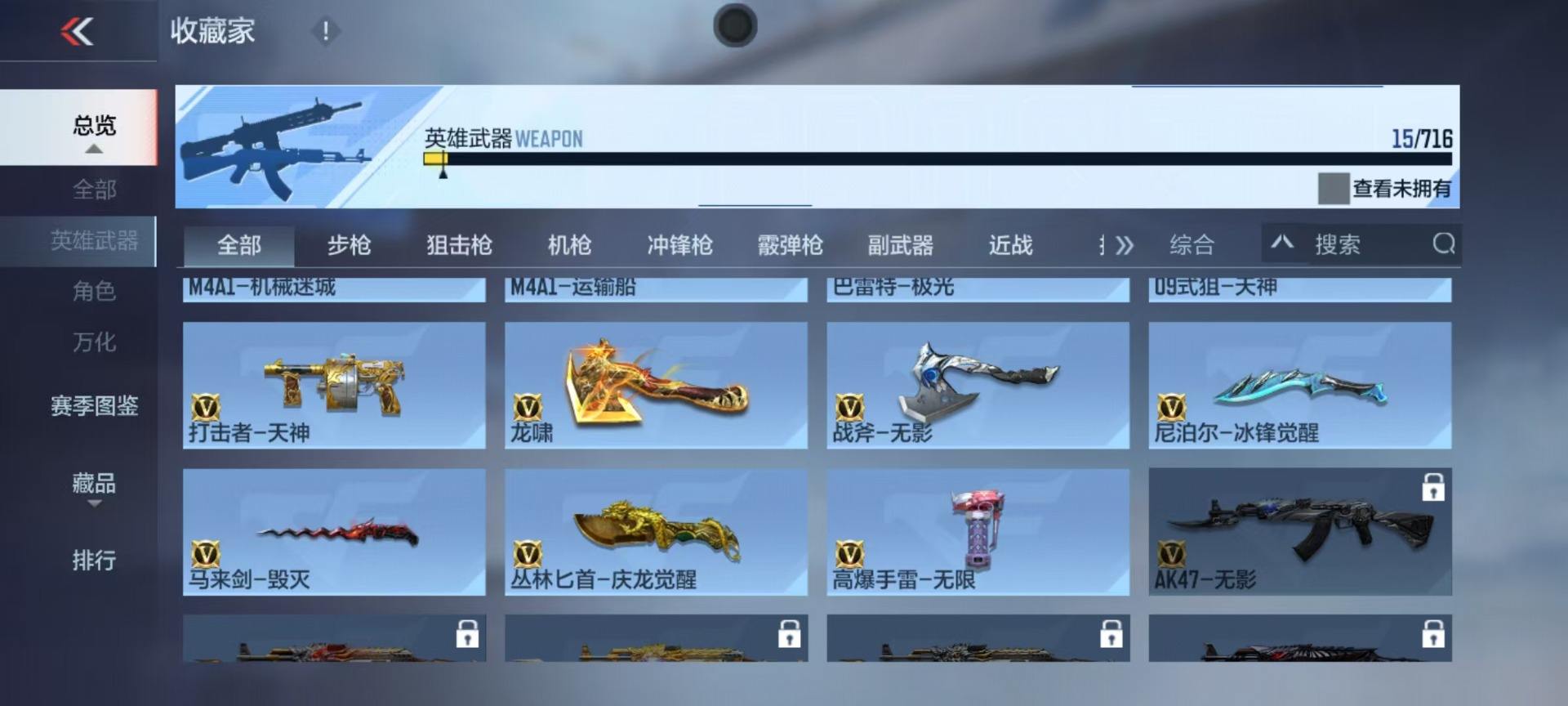 【420800】【420800】[16387443]V1 15英雄武器 可二次 可修改实名 【v武器】:打击者-天神,丛林匕首-庆龙觉醒,AK47-木兰,M4