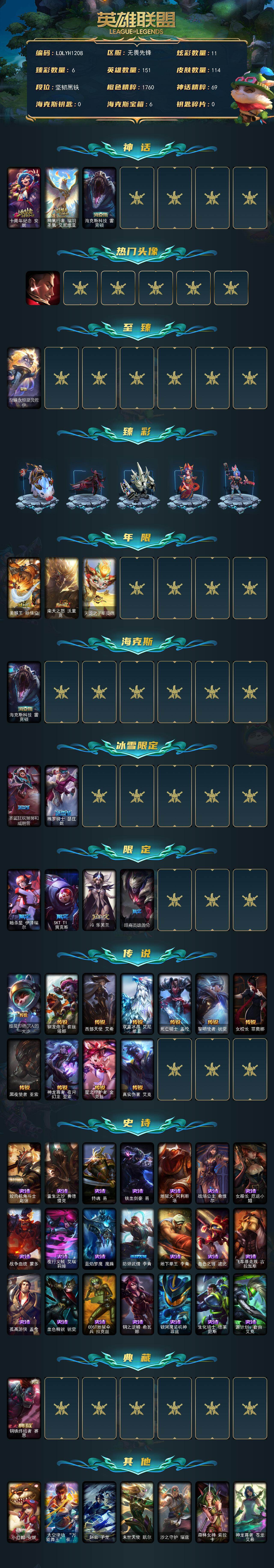 【421026】【LOLYH1208】151英雄/114皮肤/4神话/9限定/6臻彩/11炫彩/11传说/21史诗/未定级账号等级:202/十周年纪念安妮/神凰行者瑞羽凤凰艾尼维亚/海克斯科技雷克顿/觅心游侠卢锡安/至臻永恒星灵佐伊/无畏骑士瑟庄妮赤子初心/西部天使赛娜贝利尔之怠/霸天巨兽雪崩墨菲特/灵魂莲华卡西奥佩娅流火/幻灵战斗队长厄运小姐勇气赞歌/美猴王孙悟空/南天之怒沃里克/天龙之子斯莫