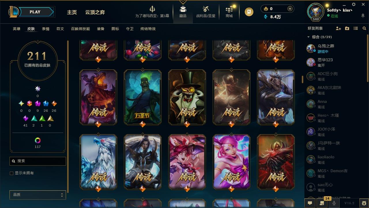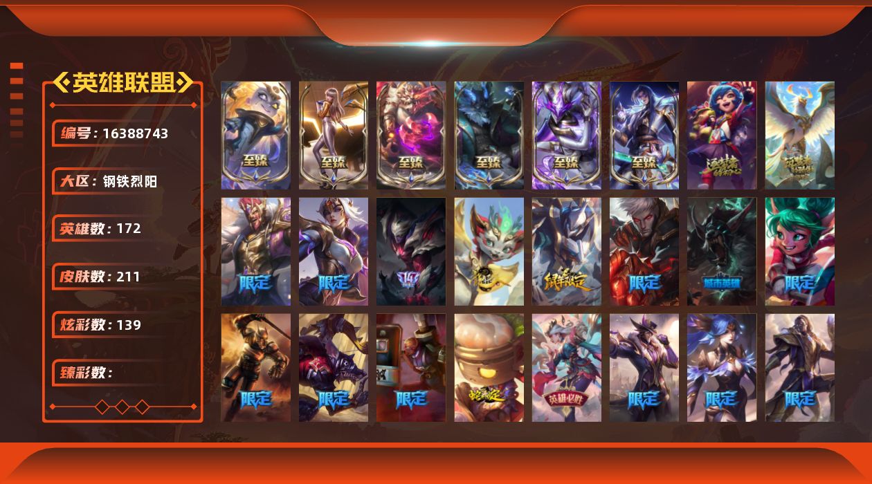 【421116】[16388743]9神话 26限定 26传说 41史诗 211皮肤 139炫彩 172英雄 可二次 可修改实名 【至臻】至臻 心之钢 永恩,至臻 斗魂觉醒 萨科,至臻 永恒星灵 佐伊,至臻 K/DA 卡莎,至臻 神龙尊者均衡之龙 沃利贝尔,至臻 北极星使者 沃里克【限定】玉剑传说 翼剑仙【赛季限定皮】胜利行刑官 德莱文,胜利凤凰 艾尼维亚,胜利女神-菲奥娜,胜利之运 崔斯特,胜