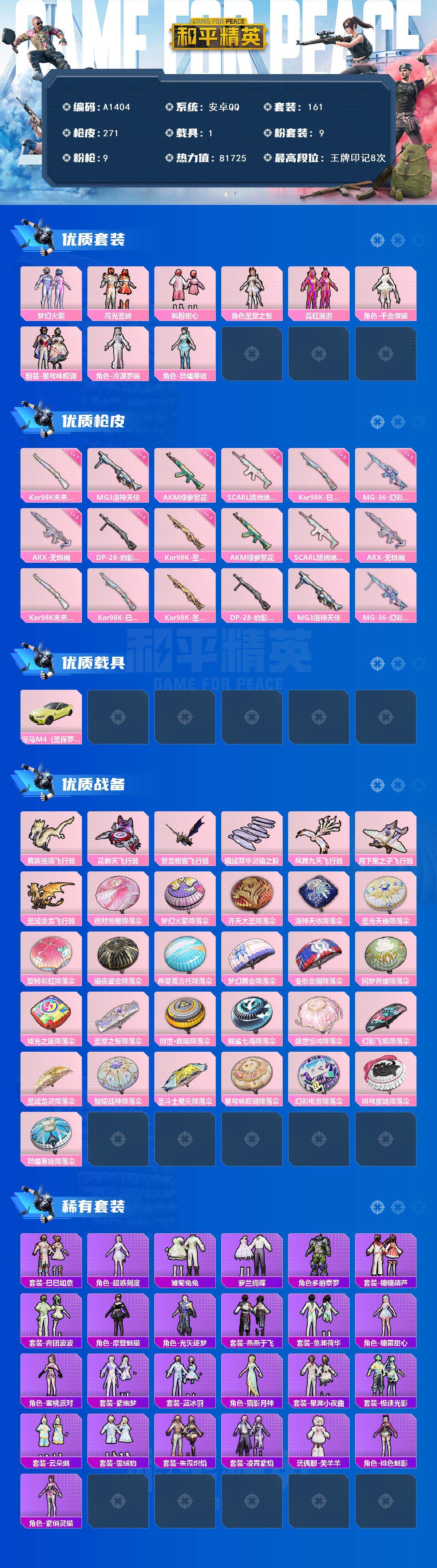游戏区服:和平精英 / 安卓系统 / QQ账号