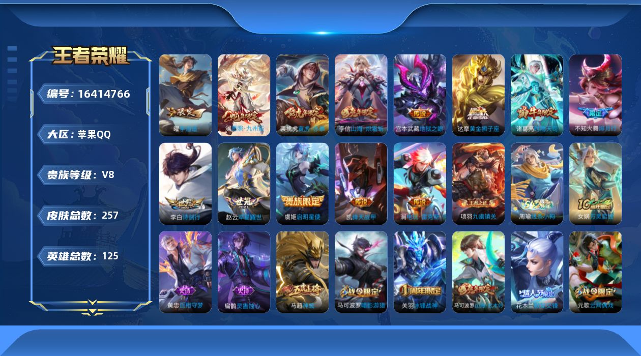 【424584】【可二次】【QQ(苹果)】黎明之约 乱世虎臣 鹰眼统帅 水晶猎龙者 晚萤 偶像歌手 地狱之眼 原初探秘者 永昼 圣诞恋歌 星夜王子 街头霸王 星界战将 沙漠行僧 紫霞仙子 淬星耀世 朔风刀 敬我三分 绯月行 电玩·雷克斯 万华元夜 潮玩造梦师 高山流水 御銮 修罗 天狼溯光者 特工魅影 诗剑行 女仆咖啡 金属风暴 疑决卦 醍醐杖 德古拉伯爵 逆浪荇歌 古海寻踪 摇滚巨星 赵云 神