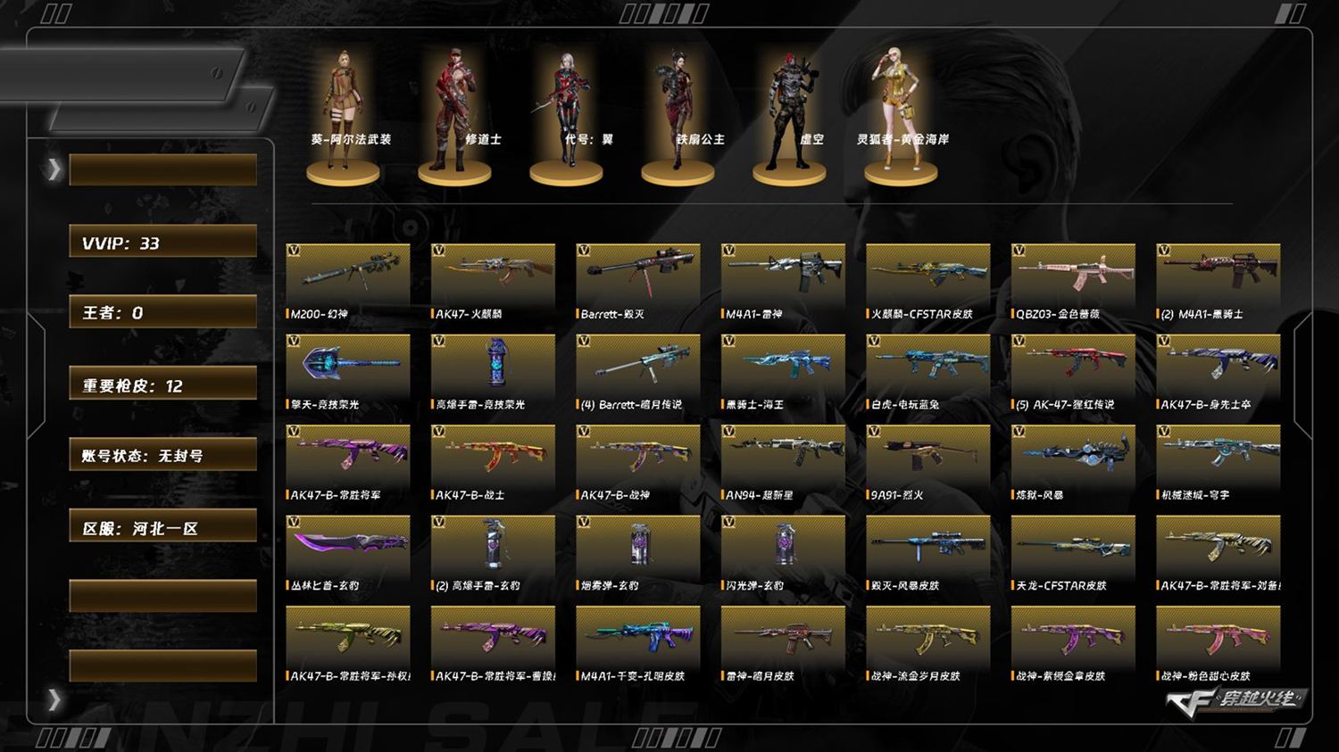 【424596】【424596】M8180/北部/河北一区/可排位/33v/幻神/QBZ金色蔷薇/白虎电玩蓝兔/火麒麟/雷神/黑骑士/超新星/机械迷城穹宇/黑