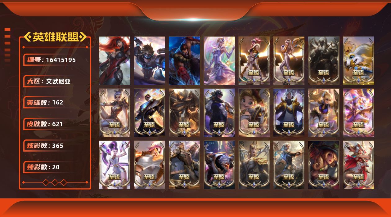 【424606】[16415195]【店主推荐捡漏号】未定级段位-162英雄-621皮肤-365炫彩-4终极-39神话-109限定-67传说-143史诗【珍稀头像】:星守阿狸头像【热门头像】:爱情之歌头像,觅心之翼奎因头像【至臻皮肤】:至臻魔女乐芙兰,至臻魅惑女巫莫甘娜,至臻KDA阿卡丽,至臻KDA阿卡丽(2022),至臻王国机神玄武盖伦,至臻战斗学院蕾欧娜,至臻西部魔影猎天使恶魔泰隆,至臻玉剑