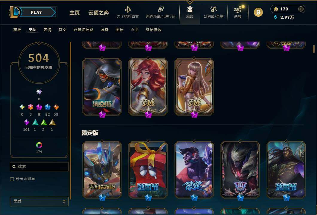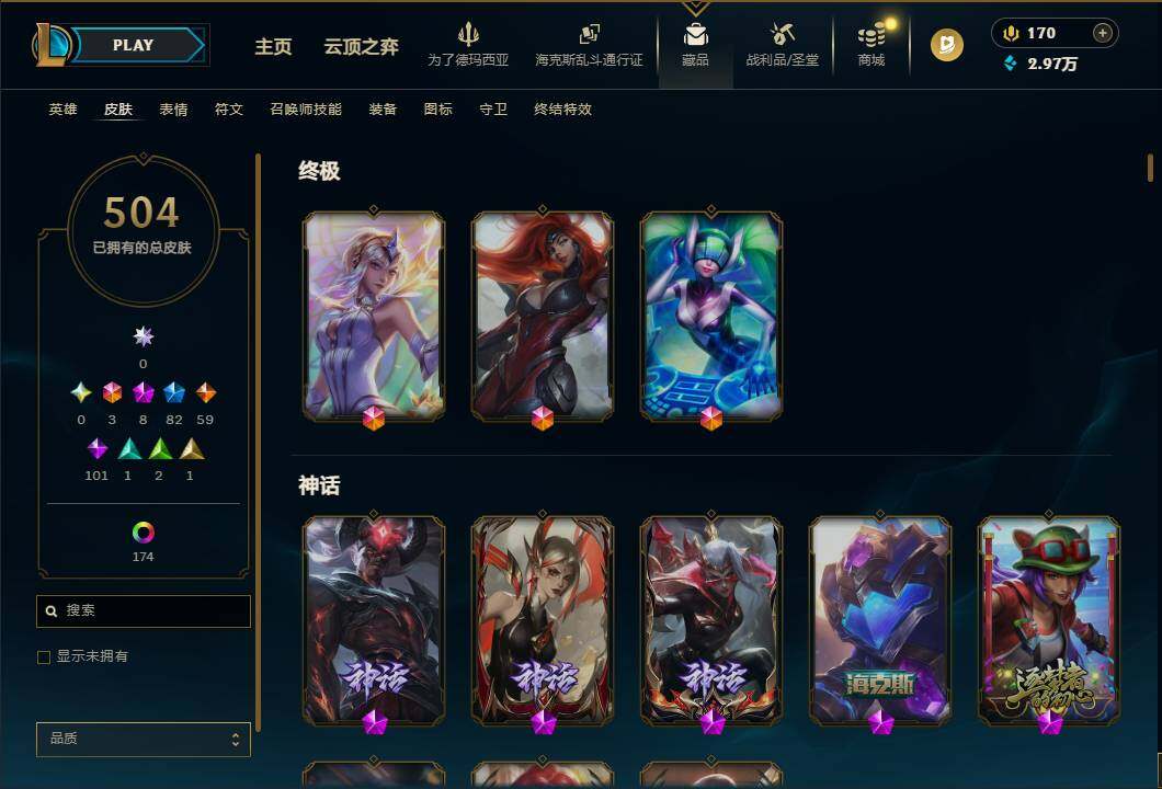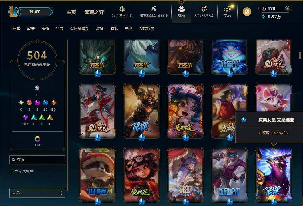 【471699】【LDC2511】172英雄/504皮肤/3终极/8神话/82限定/20臻彩/198炫彩/59传说/101史诗/未定级账号等级:309/殿堂传奇乐芙兰/十五周年纪念希维尔/殿堂传奇薇恩/创世黑夜使者亚索/海克斯科技拉莫斯/新创战纪希维尔/至臻K/DA卡莎/至臻战斗学院拉克丝/雪花/爱情之歌/天龙之子卡莎飞龙乘云/墨之影武者亚索金墨耀影/花仙子拉克丝纹白/霸天战士雷恩加尔星啸天火/