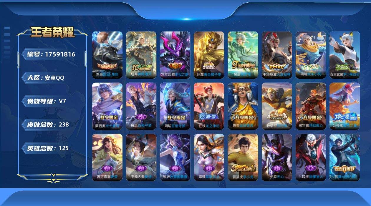 游戏区服:王者荣耀 / 安卓系统 / QQ账号