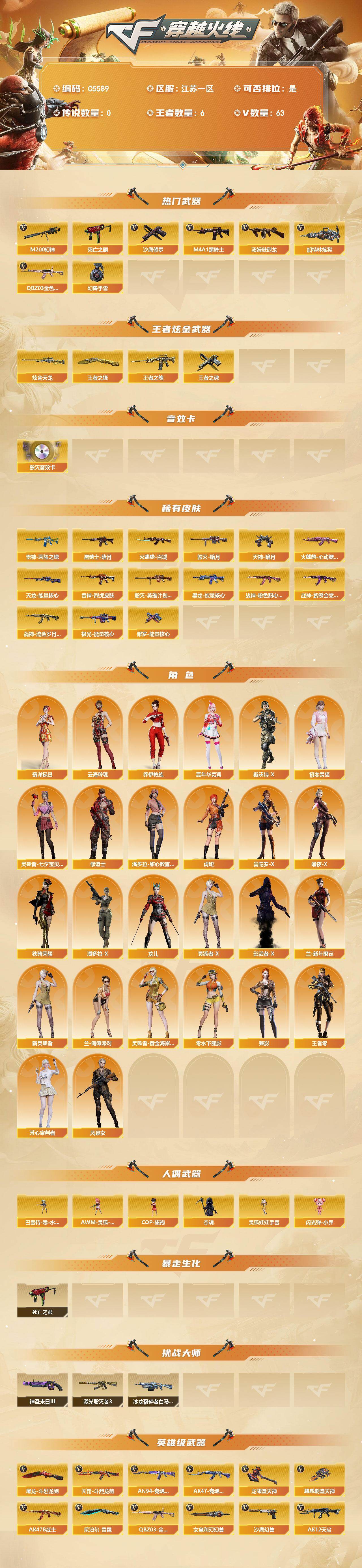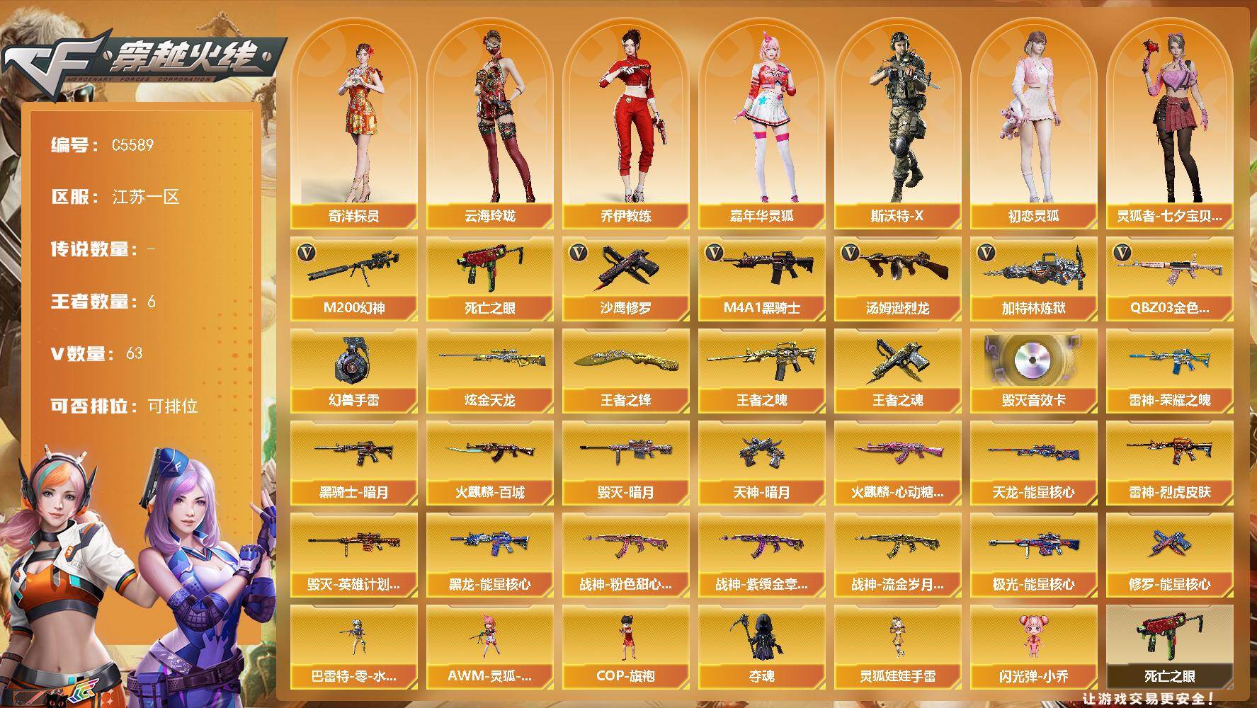 【552023】【552023】【C5589】江苏一区-65V-6王者武器数-1炫金武器数【热门武器】:QBZ03-金色蔷薇,M200-幻神,死亡之眼,M4A