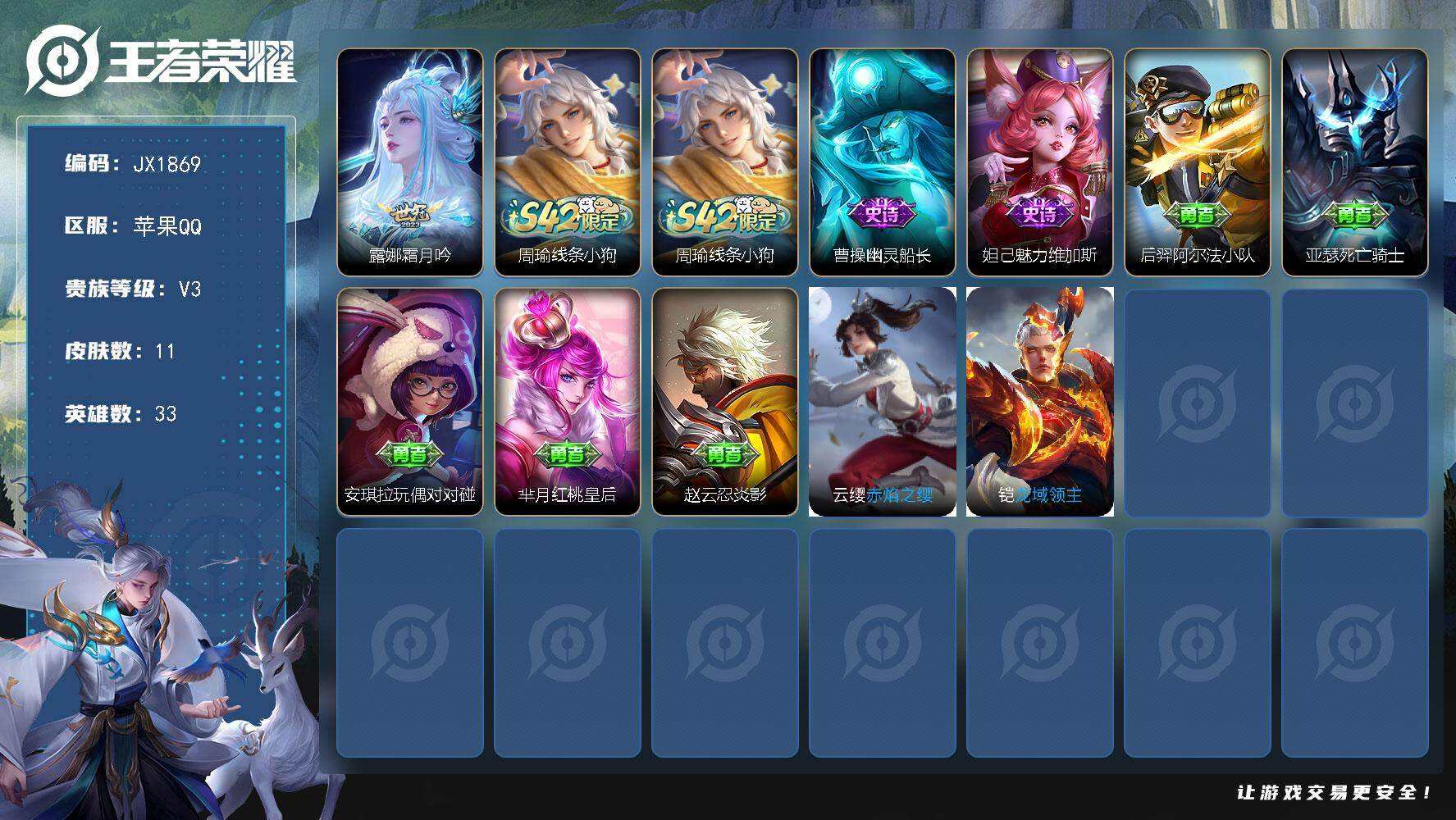 【552934】【可二次】【QQ(苹果)】忍·炎影 赤焰之缨 龙域领主 幽灵船长 死亡骑士 魅力维加斯 霜月吟 玩偶对对碰 韩信 阿尔法小队 红桃皇后