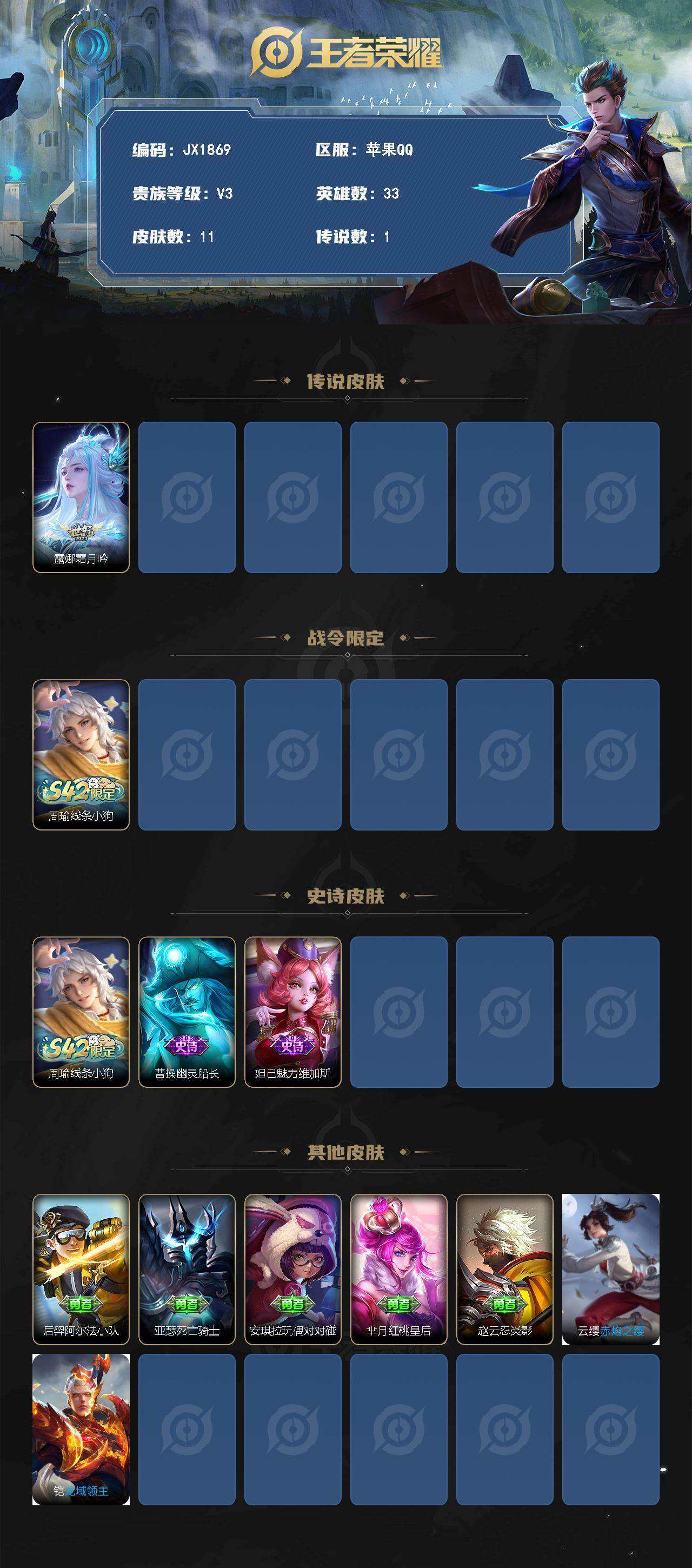 游戏区服:王者荣耀 / 苹果系统 / QQ帐号