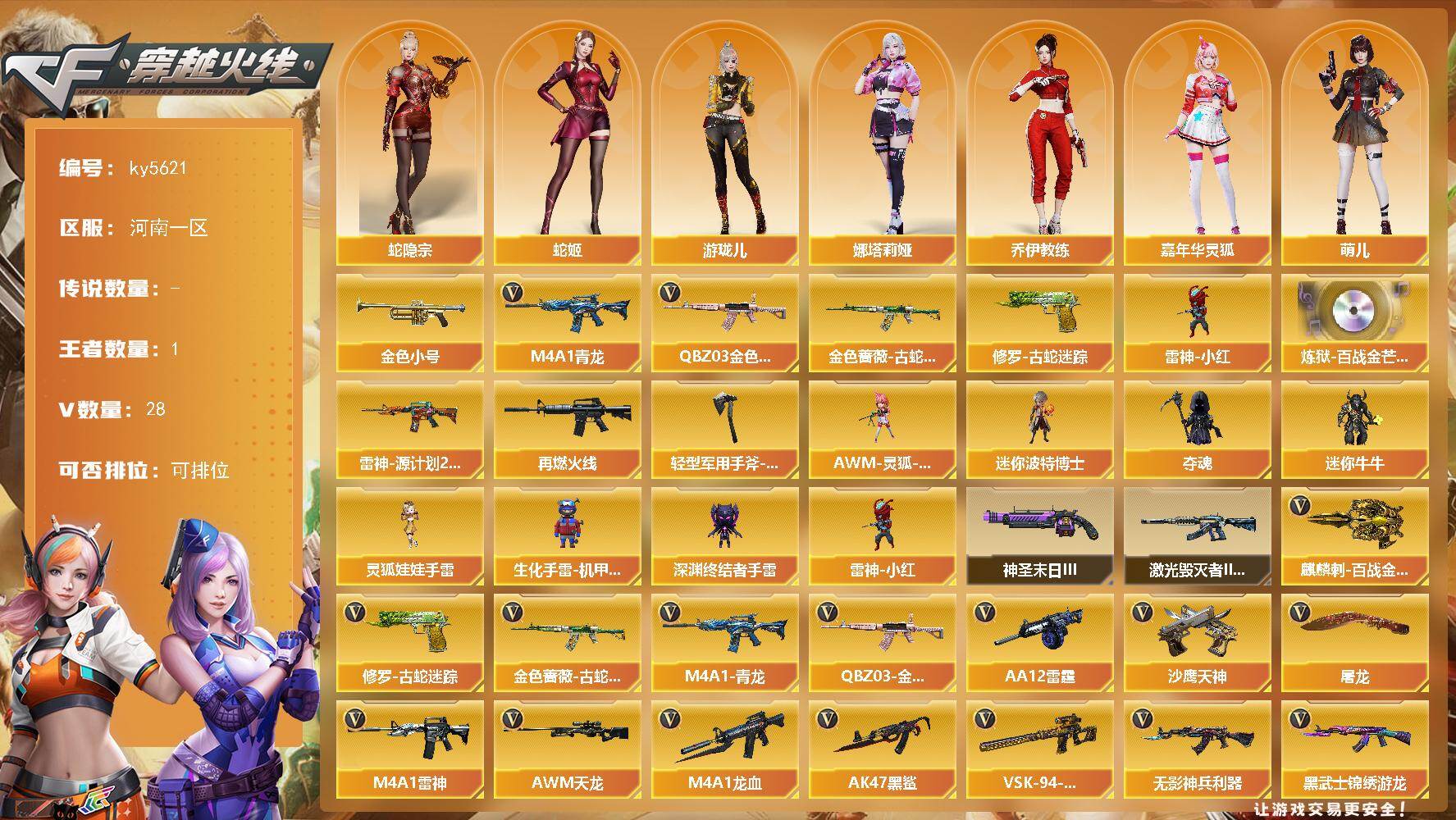 【559539】【559539】[17668561]【ky5621】河南一区-26V-1王者武器数-0炫金武器数【热门武器】:QBZ03-金色蔷薇,M4A1-