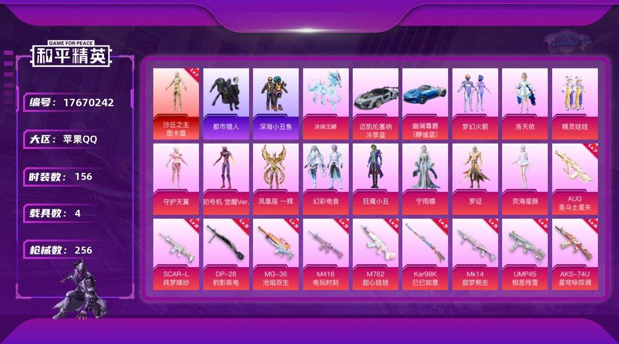 【559735】【不可二次】【苹果QQ】精灵娃娃 梦幻火箭 UMP45-相思残雪 深海小丑鱼 洛天依 M762-甜心娃娃