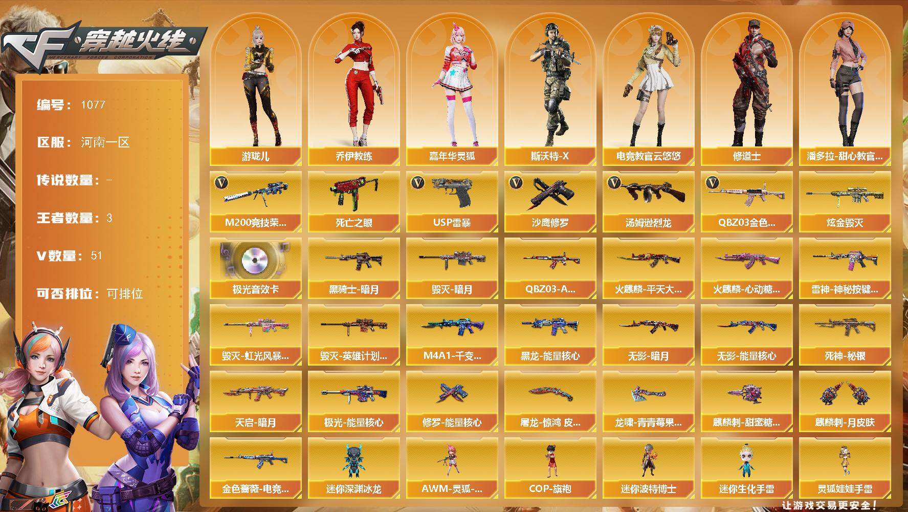 【559768】【559768】[17670569]河南一区-51V-3王者-1炫金【热门武器】:QBZ03-金色蔷薇,M200-竞技荣光,死亡之眼,汤姆逊-