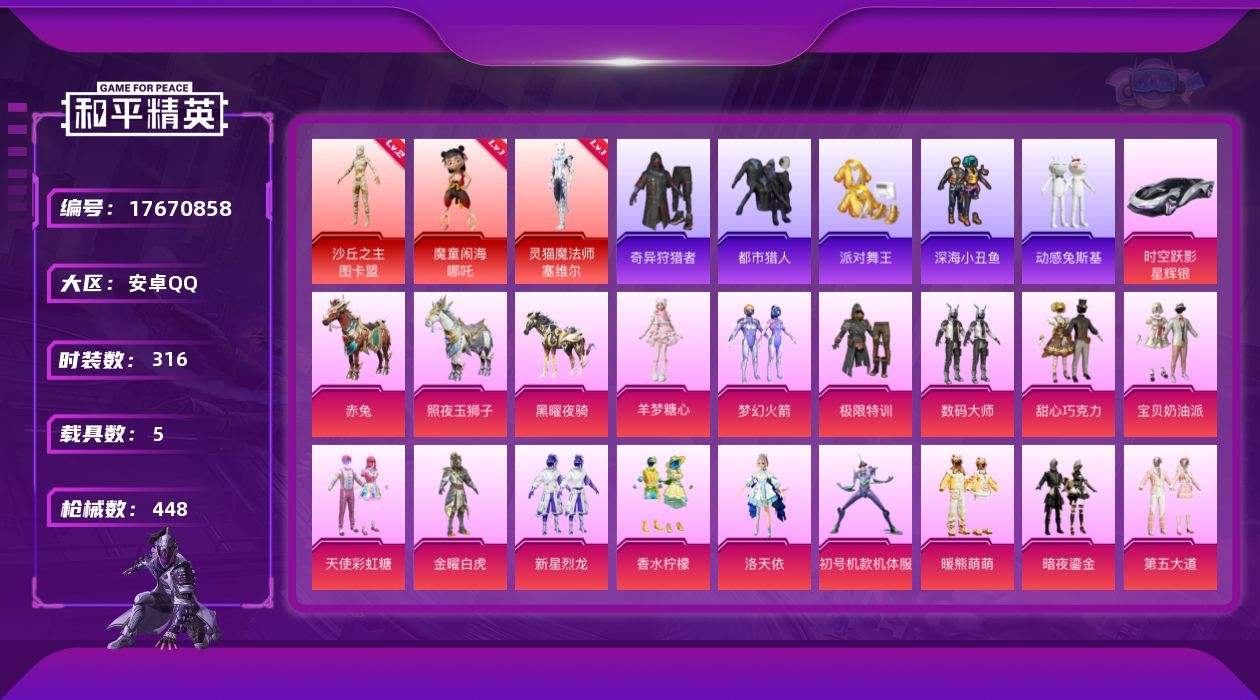 【559797】【可二次】【安卓QQ】大橘为重 M762-激战未来 奇异狩猎者 新星烈龙 MG3-洛神天依 甜心巧克力 洛天依 极限特训 M417射手步枪 梦幻火箭 AKM-梦之光华 M416-心之恋语 天使彩虹糖 金耀白虎 数码大师 深海小丑鱼 宝贝奶油派 激萌小黄鸭 紫螳螂
