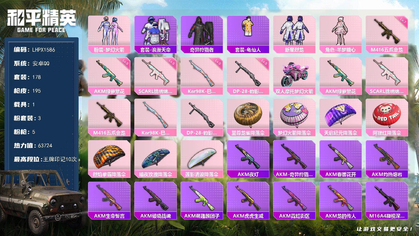 游戏区服:和平精英 / 安卓系统 / QQ账号