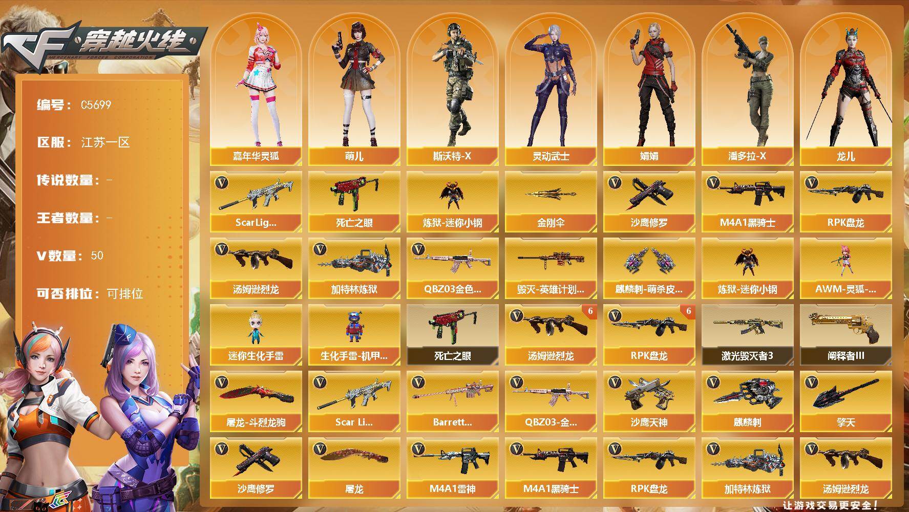 【570997】【570997】【C5699】江苏一区-50V-0王者武器数-0炫金武器数【热门武器】:QBZ03-金色蔷薇,Scar Light-白虎,死亡