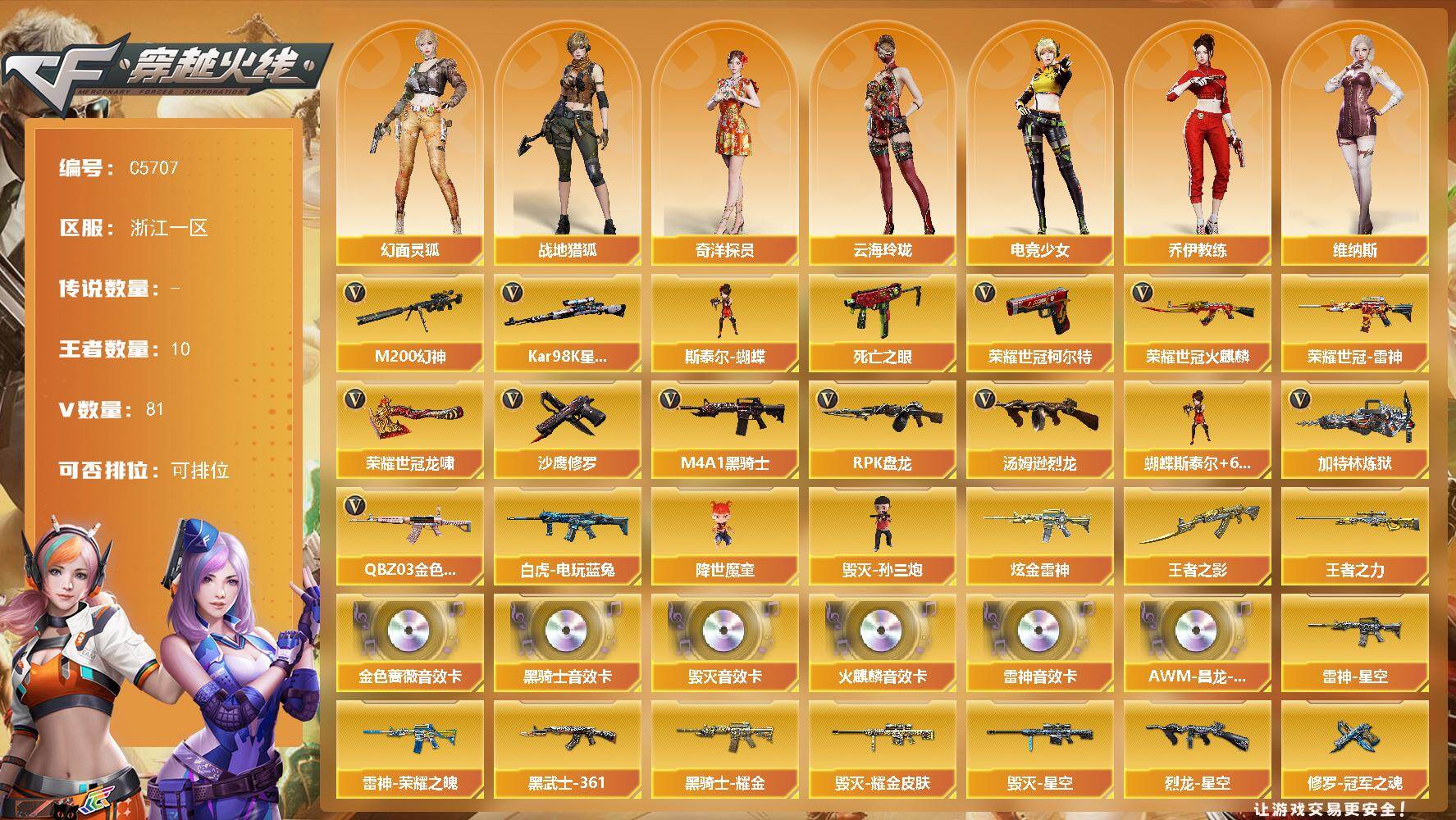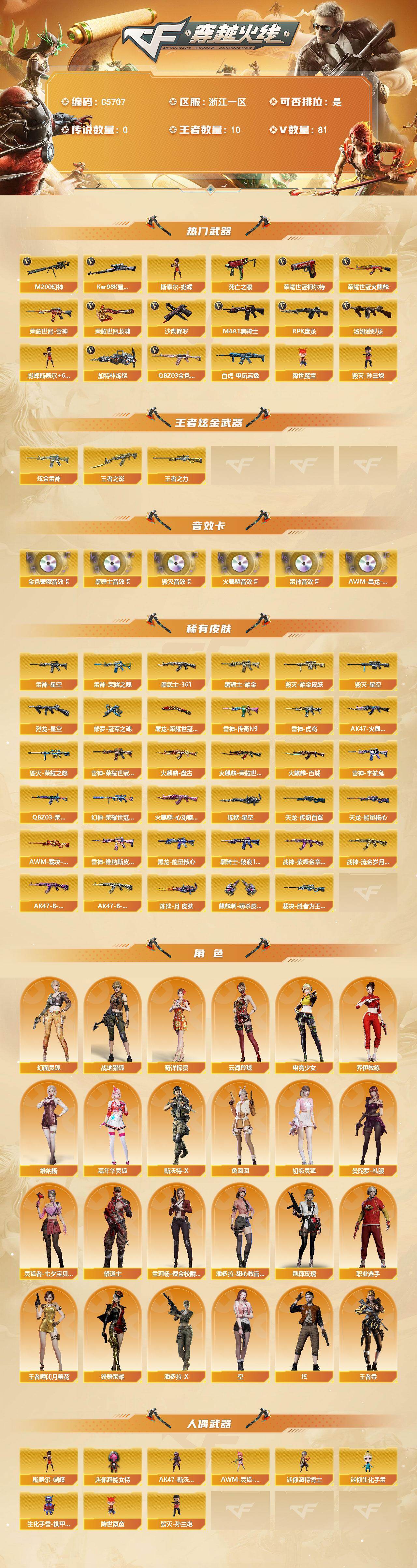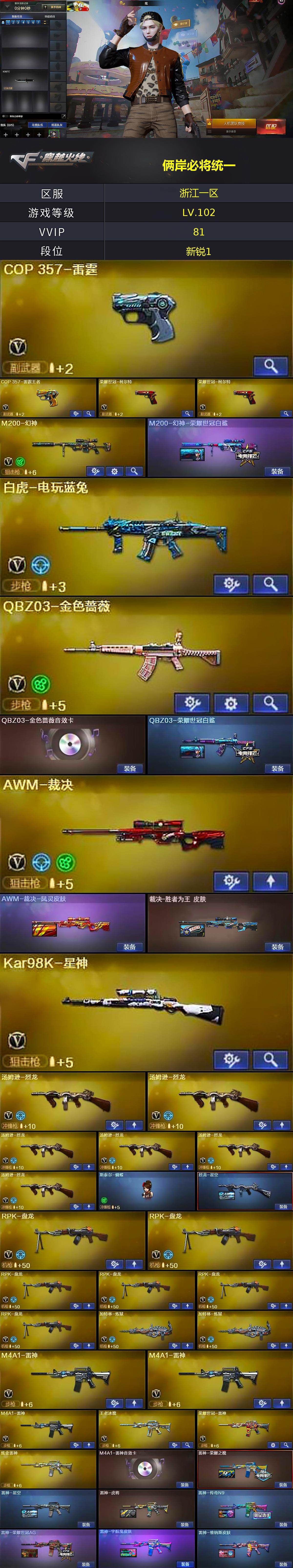 【571006】【571006】【C5707】浙江一区-89V-10王者武器数-1炫金武器数【热门武器】:QBZ03-金色蔷薇,M200-幻神,死亡之眼,荣耀