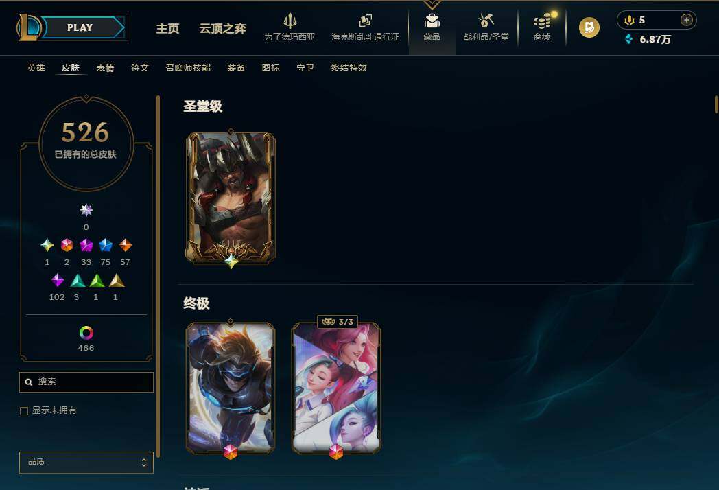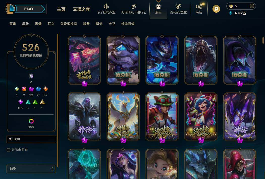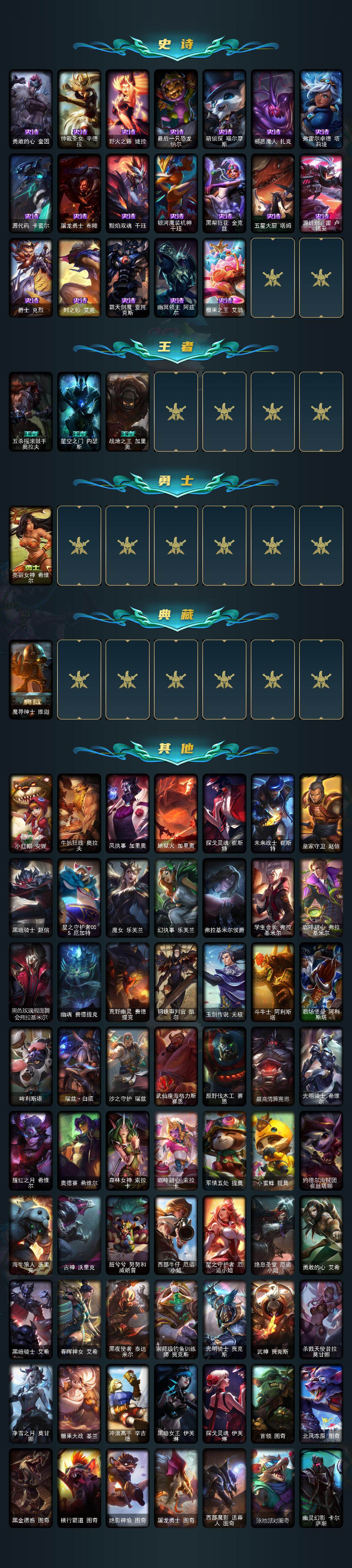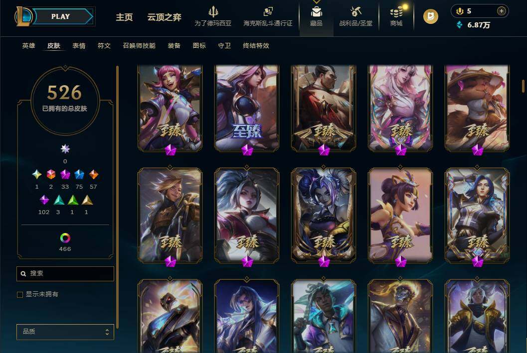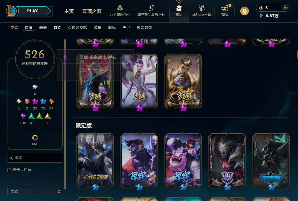 【571502】【LD5275】172英雄/526皮肤/4终极/33神话/76限定/14臻彩/519炫彩/58传说/103史诗/铂金/萨恩乌祖尔莫德凯撒/十周年纪念安妮/源代码乐芙兰/十五周年纪念希维尔/暗星科加斯/神凰行者瑞羽凤凰艾尼维亚/水晶掠夺者卡兹克/灰烬骑士派克/至爱的鹿/至臻至高天凯尔/至臻灵魂莲华提莫/至臻北极星使者沃里克/至臻绝息圣堂厄运小姐/至臻双城之战2指挥官凯特琳/至臻黑色