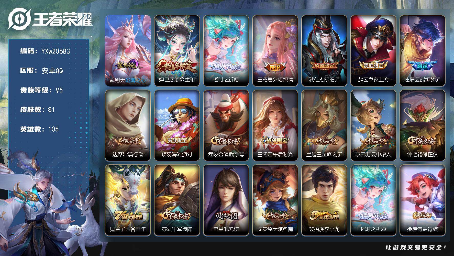 【577257】【可二次】【QQ(安卓)】霸王丸 化身博士 尼罗河女神 偶像歌手 哥特玫瑰 舞动绿茵 沙漠行僧 死亡骑士 云端筑梦师 缤纷独角兽 冰刃幻境 异域舞娘 东海龙王 万圣前夜 幻海之心 花好人间 伊势巫女 年年有余 阴阳师 极冰防御线 星航指挥官 兔女郎 街头旋风 战争女神 李小龙 云中旅人 海滩派对 弈星混沌棋 大漠名商 时之祈愿 缤纷绘卷 皇家上将 白色死神 心灵骇客 演武夺筹 黄