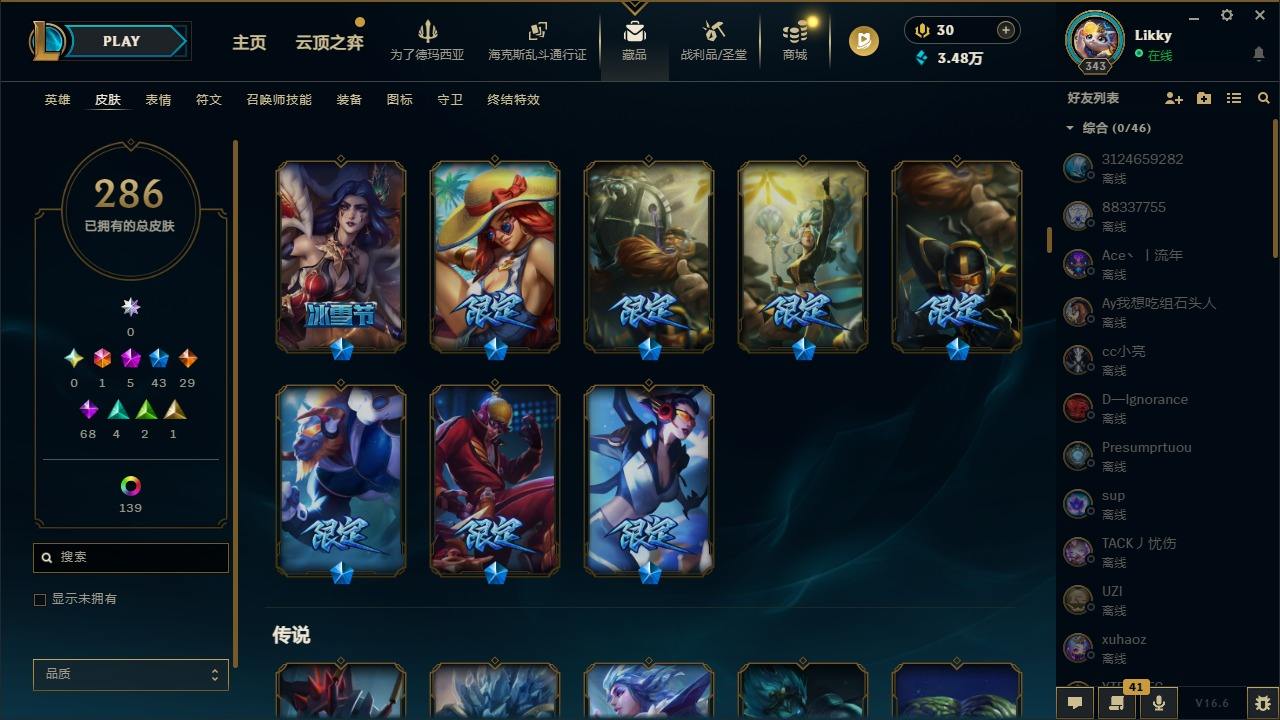 【597422】[17938635]1终极 5神话 43限定 30传说 69史诗 286皮肤 146炫彩 172英雄 可二次 可修改实名 【海克斯】海克斯 安妮 【限定】2021 全球总决赛 嘉文四世 【情人节限定】甜心宝贝 娑娜 【赛季限定皮】胜利行刑官 德莱文,胜利凤凰 艾尼维亚,胜利女神-菲奥娜,胜利之运 崔斯特,胜利剑圣 易,胜利女神 娑娜,胜利巨口 克格莫,胜利之王 泰达米尔,胜利枪