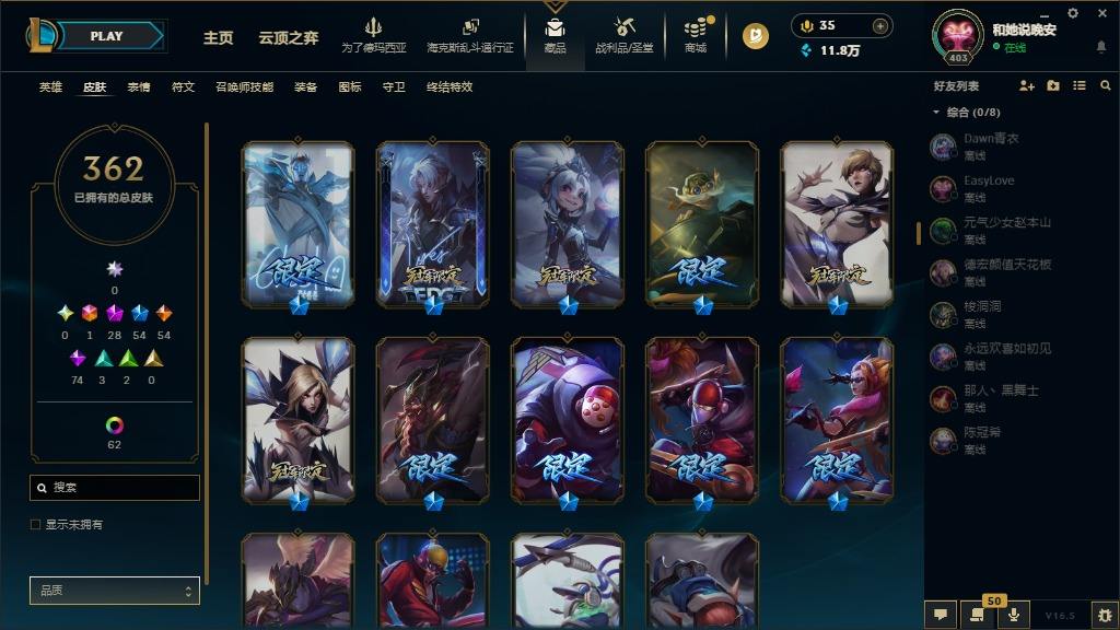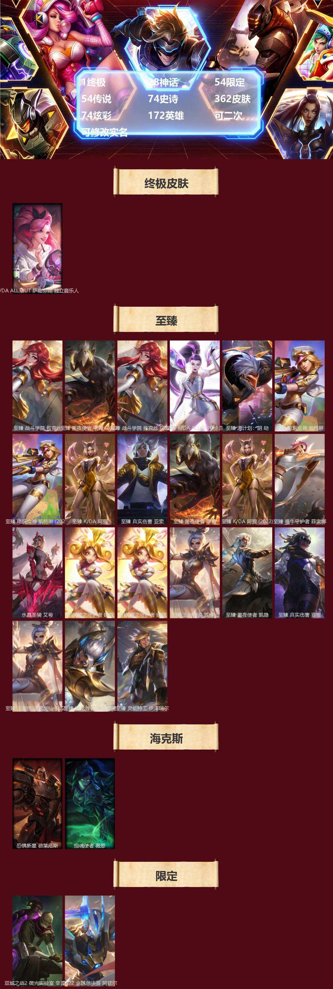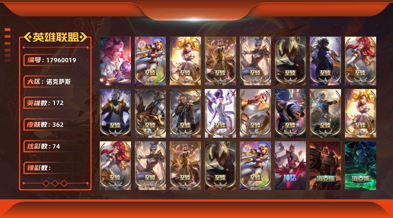 【600933】[17960019]1终极 28神话 54限定 54传说 74史诗 362皮肤 74炫彩 172英雄 可二次 可修改实名 【至臻】至臻 黑夜使者 李青(2022),至臻 K/DA 阿狸(2022),至臻 电玩女神 凯特琳(2022),至臻 玉剑传说 武剑仙(2022),至臻 战斗学院 拉克丝(2022),至臻 电玩女神 凯特琳,至臻 星之守护者 妮寇,至臻 K/DA 阿狸,至臻