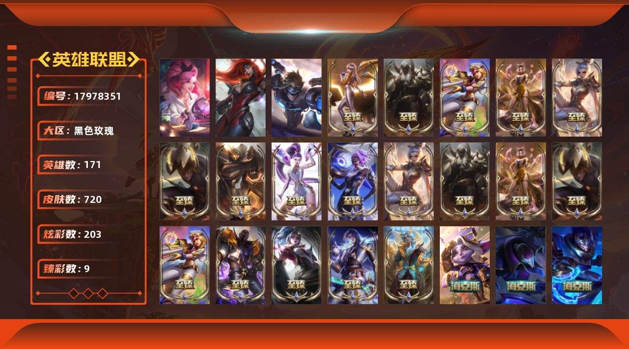 【602765】[17978351]【特价出售/店主推荐】铂金段位-171英雄-720皮肤-203炫彩-5终极-30神话-116限定-71传说-162史诗【至臻皮肤】:至臻电玩女神凯特琳,至臻电玩女神凯特琳(2022),至臻黑夜使者李青,至臻黑夜使者李青(2022),至臻天龙之子伊泽瑞尔,至臻魔女阿卡丽,至臻王国机神玄武盖伦,至臻玉剑传说武剑仙锐雯,至臻玉剑传说武剑仙(2022),至臻KDA阿狸