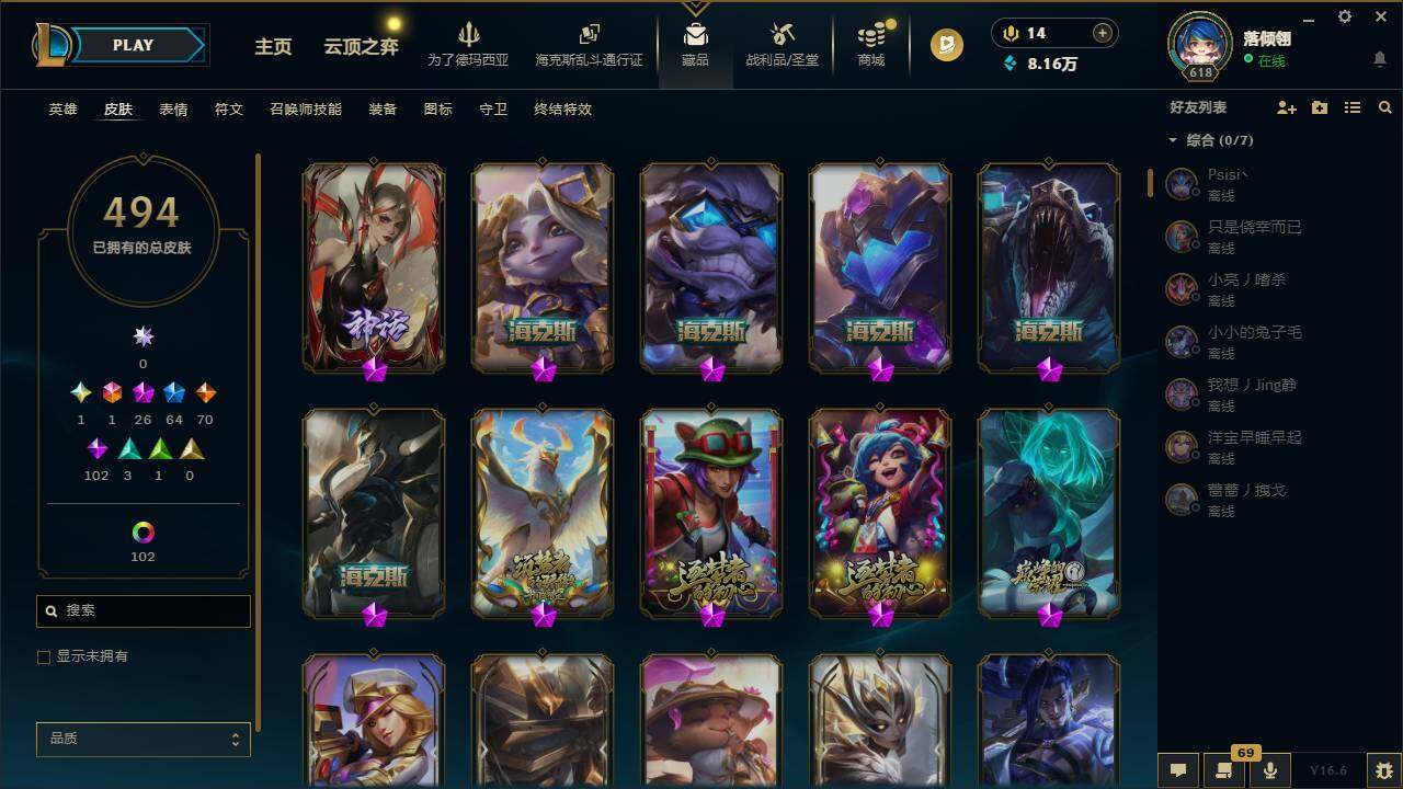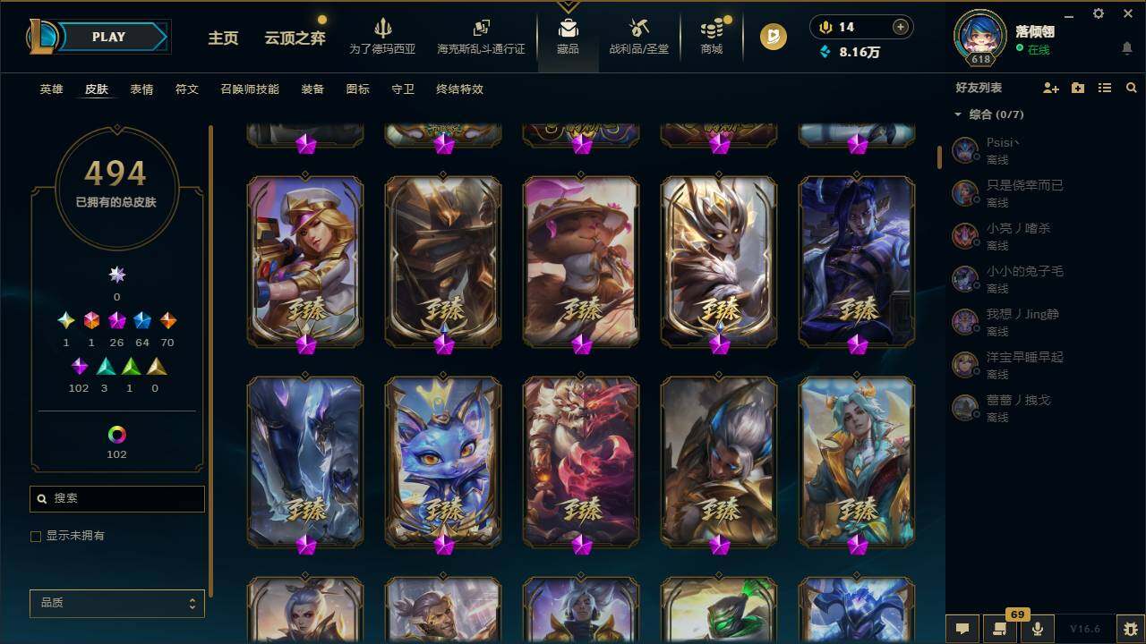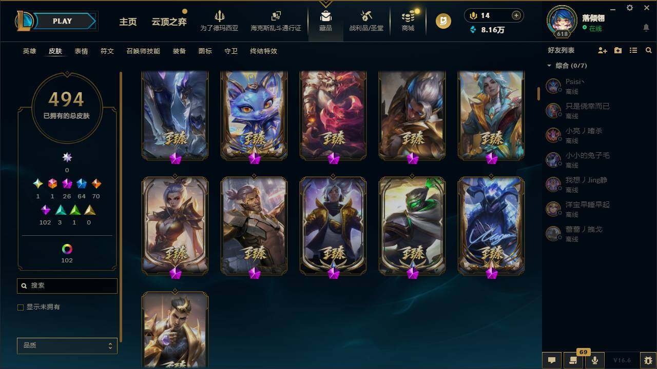 【603363】【LDC3001】172英雄/494皮肤/1终极/26神话/64限定/20臻彩/134炫彩/72传说/103史诗/铂金/爱意绵绵/王佛耶戈/十周年纪念安妮/源代码乐芙兰/殿堂传奇乐芙兰/十五周年纪念希维尔/神凰行者瑞羽凤凰艾尼维亚/至臻灵魂莲华提莫/至臻征服者贾克斯/至臻电玩女神凯特琳/至臻天龙之子伊泽瑞尔/至臻王者机甲玄武盖伦/至臻玉剑传说武剑仙/至臻神龙尊者均衡之龙沃利贝尔/