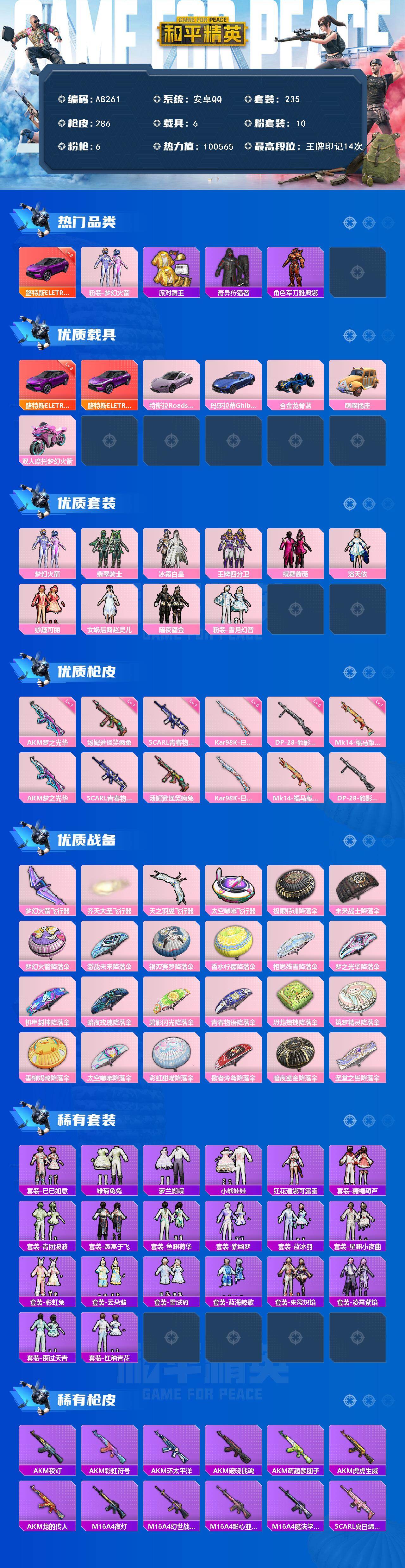 游戏区服:和平精英 / 安卓系统 / QQ账号