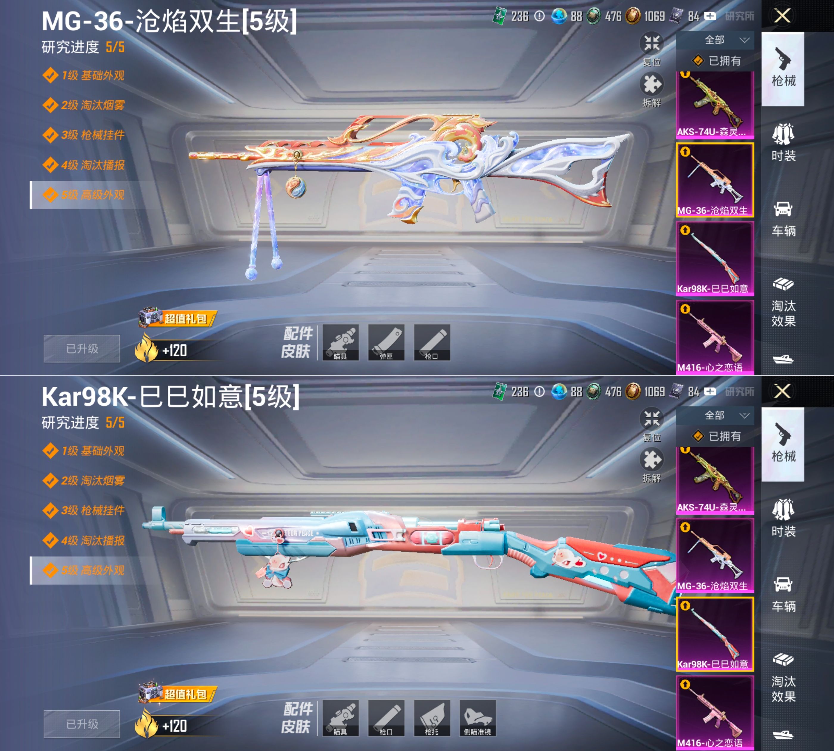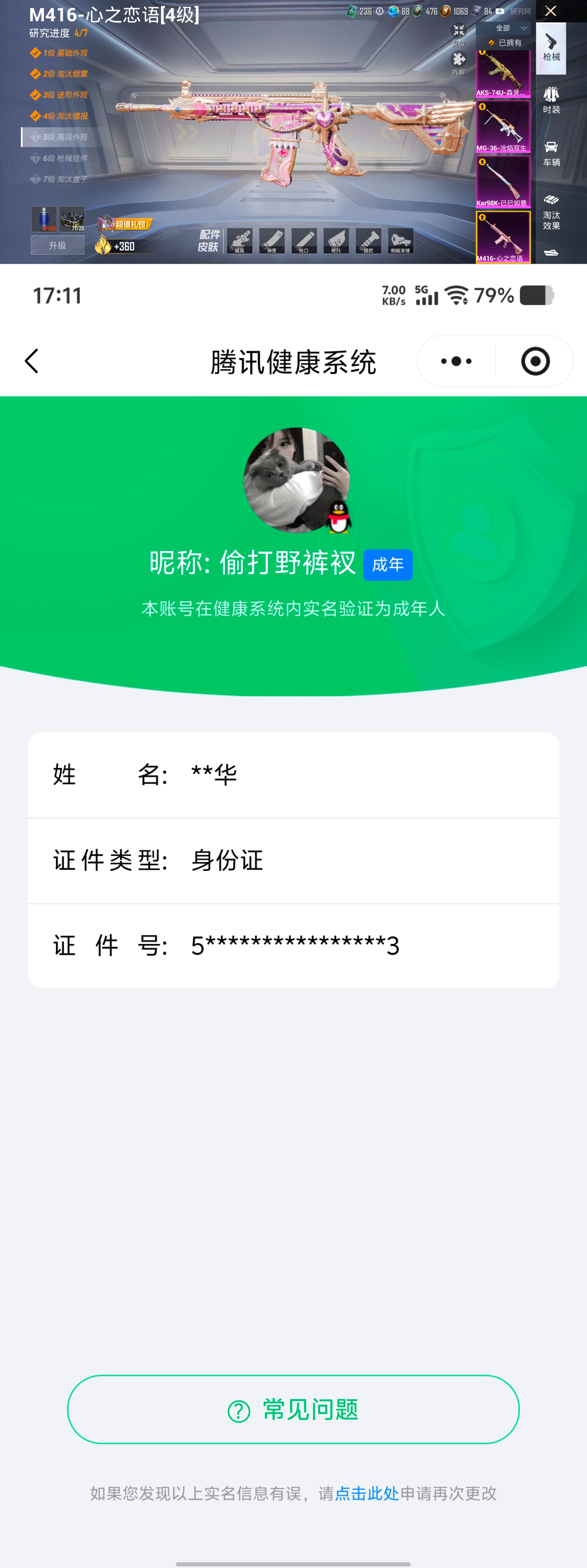 【606910】【可二次】【安卓QQ】星之彼岸 漫步者 M416-心之恋语 都市猎人 深海小丑鱼 M416-黄金龙骨 AKM影袭 幻影公爵 浪漫天命 暗影哥特 AWM-黄金龙骨 忍者信条