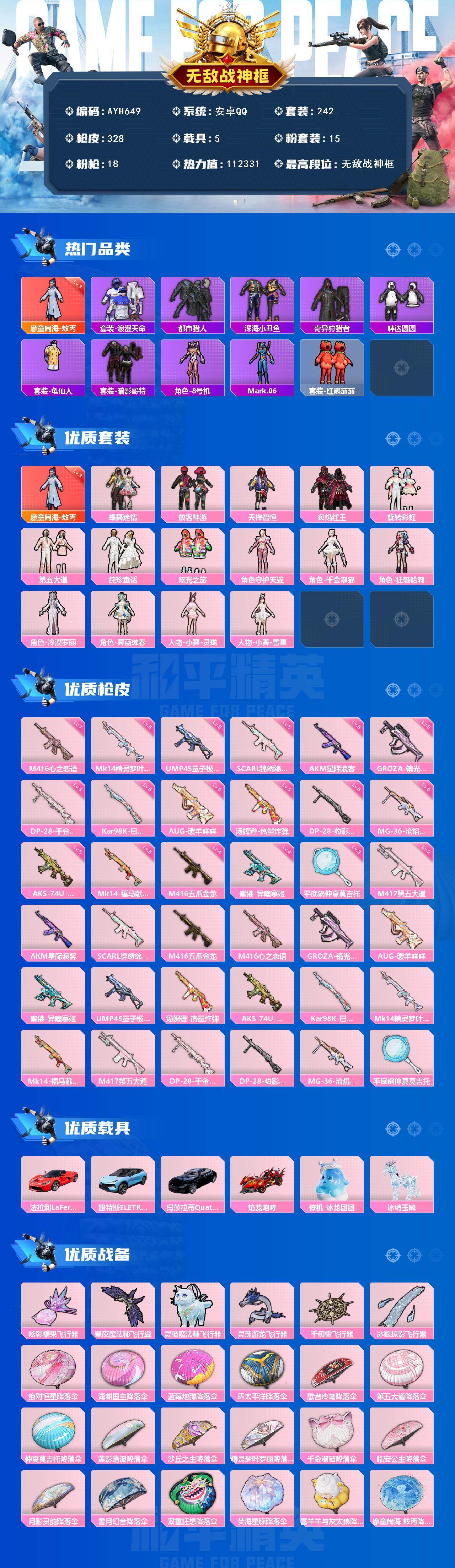 游戏区服:和平精英 / 安卓系统 / QQ账号