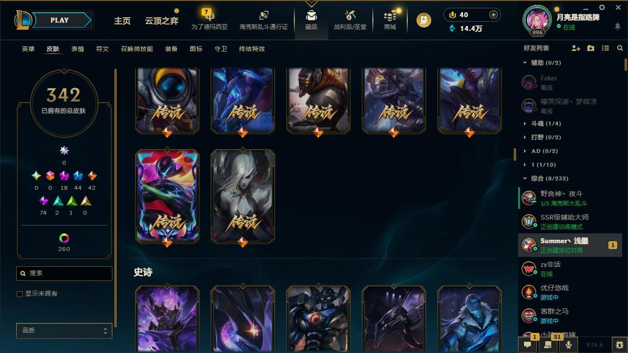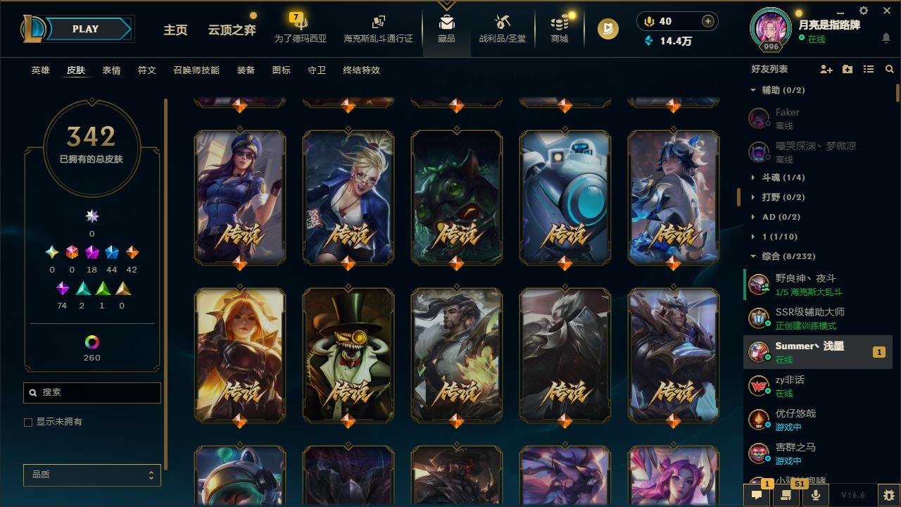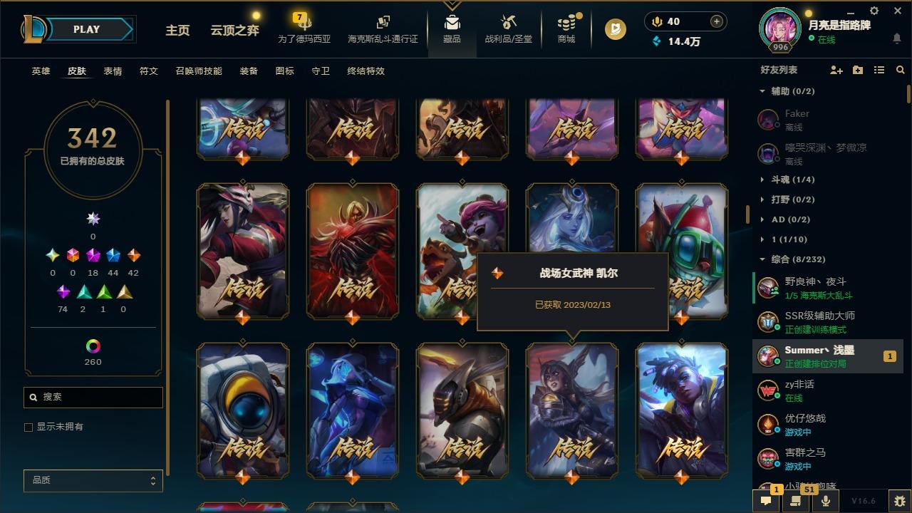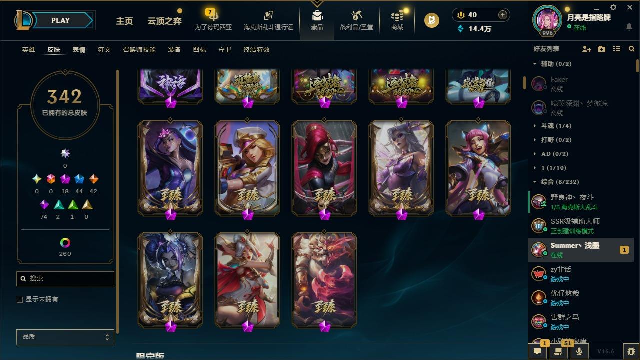 【608473】[18017408]18神话 44限定 43传说 75史诗 342皮肤 276炫彩 172英雄 可二次 可修改实名 【至臻】至臻 花仙使者 卡特琳娜,至臻 黑色玫瑰假面舞会 卡特琳娜,至臻 暗星女王 黛安娜,至臻 魔域梦魇 泽丽,至臻 电玩女神 凯特琳,至臻 神龙尊者均衡之龙 沃利贝尔,至臻 神凰行者 烈羽焰凰 霞,至臻 幻灵战斗猫 金克丝,殿堂传奇 乐芙兰【海克斯】海克斯 卡萨