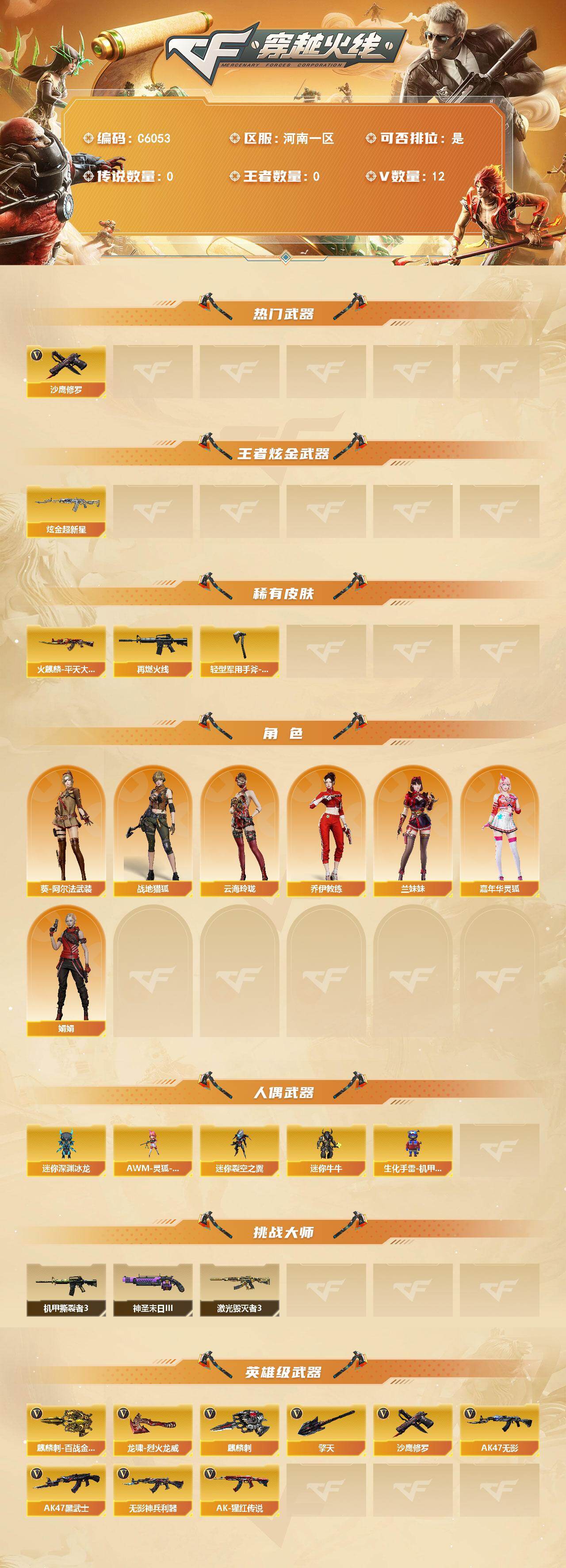【611511】【611511】[18042541]河南一区-12V-0王者武器数-1炫金武器数【热门武器】:沙鹰-修罗【王者炫金武器】:炫金超新星【皮肤】: